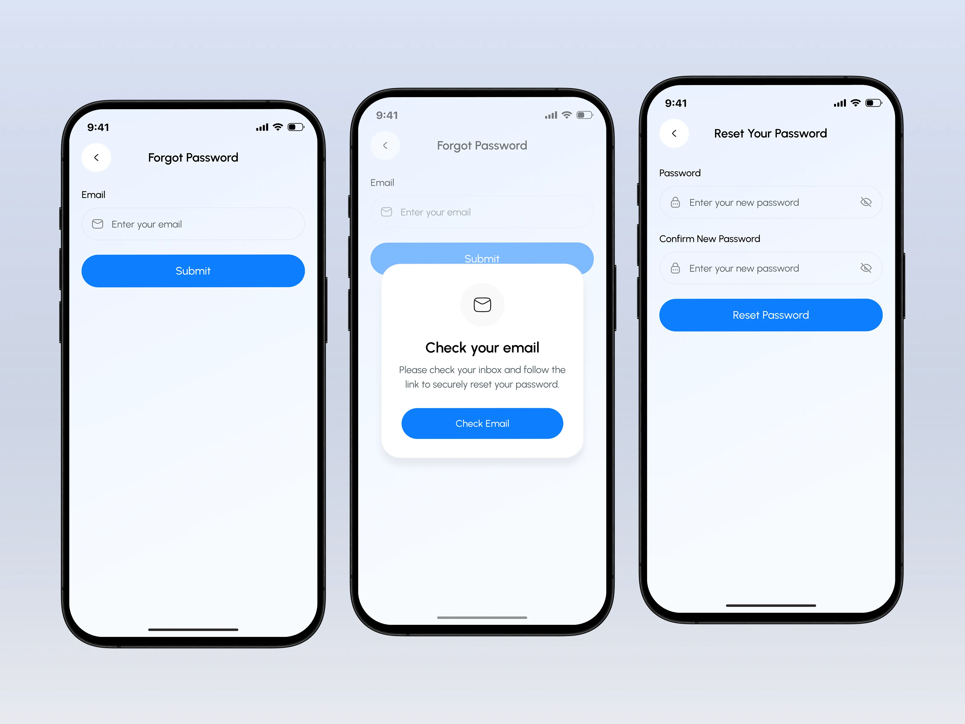 These screens play a crucial role in a userโs journey, especially in a travel app where security, clarity, and usability are paramount. I focused on a clean layout, medical-safe color palettes, and intuitive UI patterns to ease the sign-in process and help users recover passwords without frustration.
