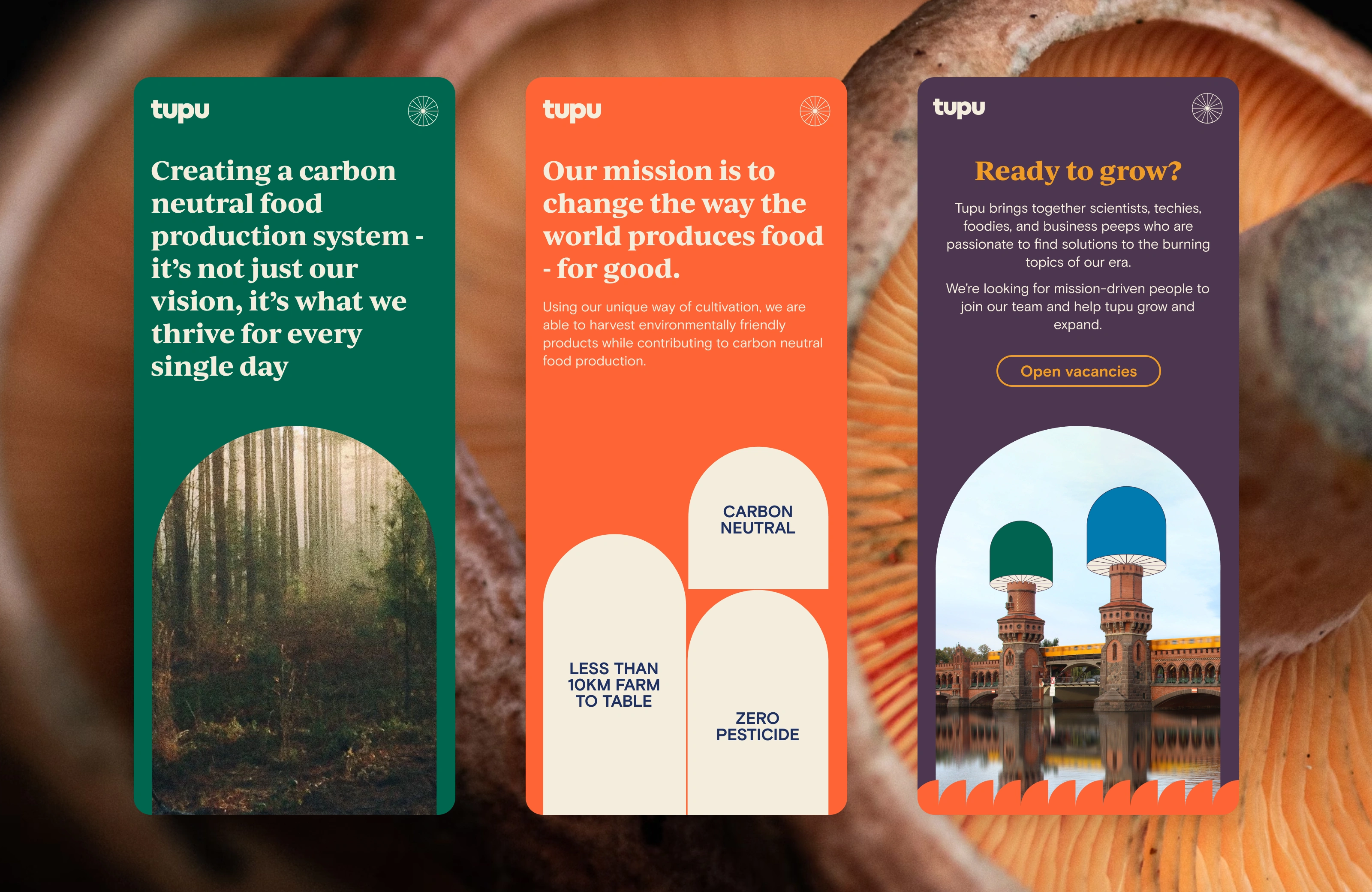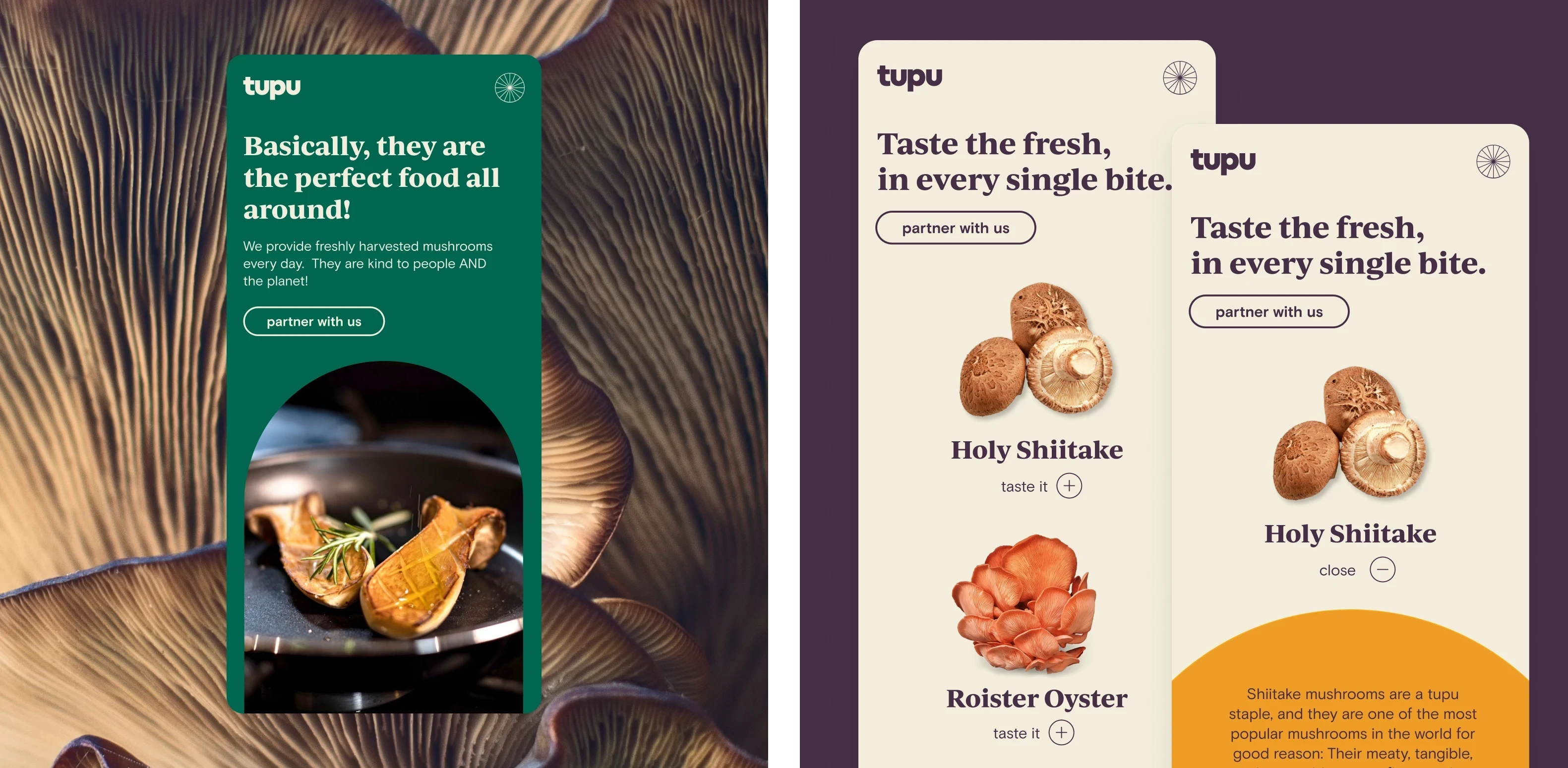 Designed an interactive website for Tupu, focusing on mushroom growth symbolism across the webpage