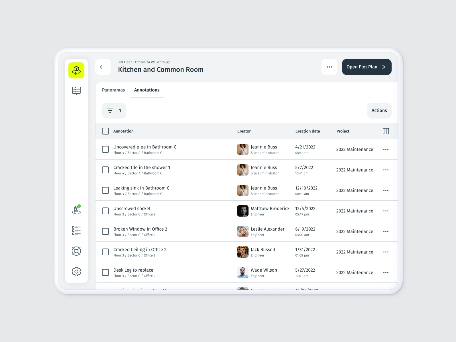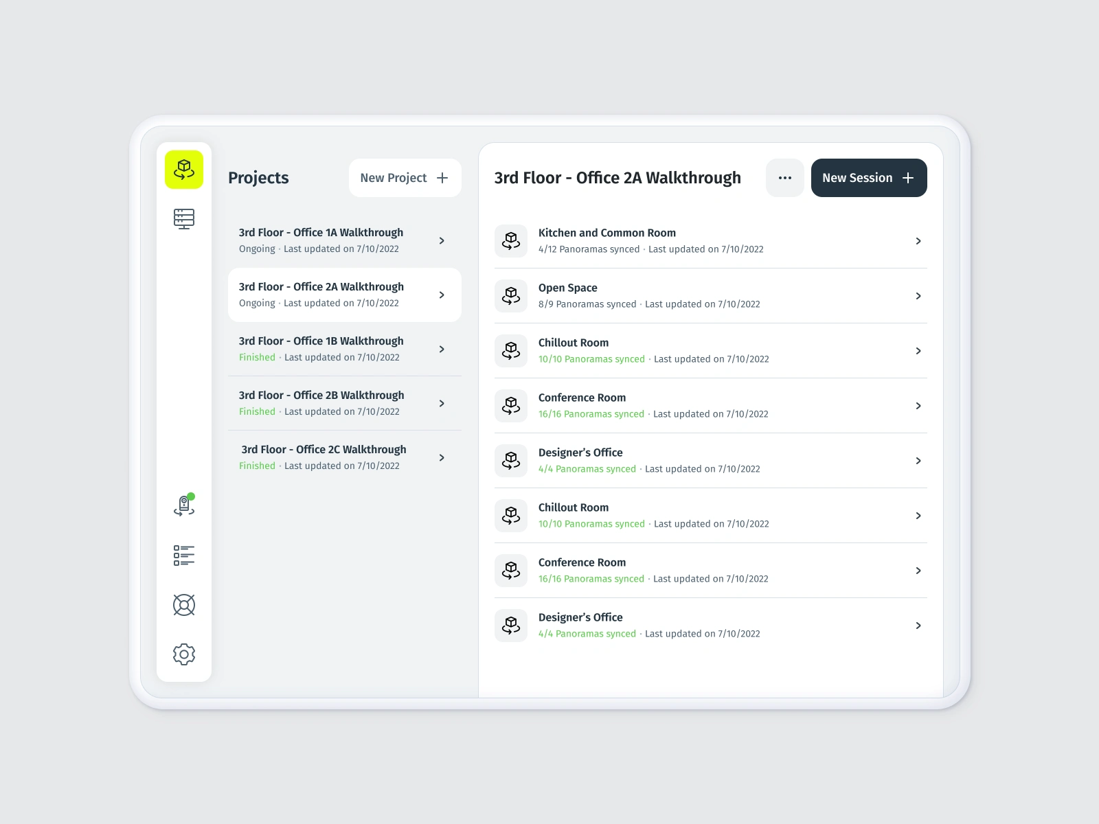 case study. The app was created for engineers working on-site to take scans and panoramas, then upload them to the portal. Additionally, the app can be used to do on-site maintenance