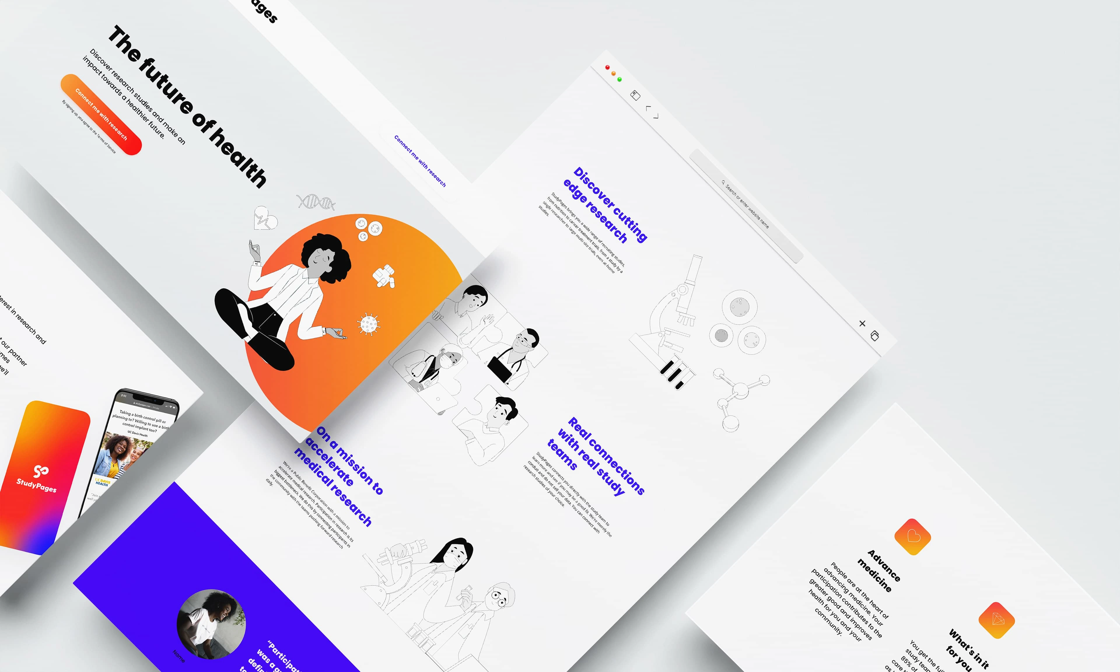 Created the logo, brand identity, website, and illustrations for StudyPages, a platform uniting researchers and participants to speed up medical advancements.