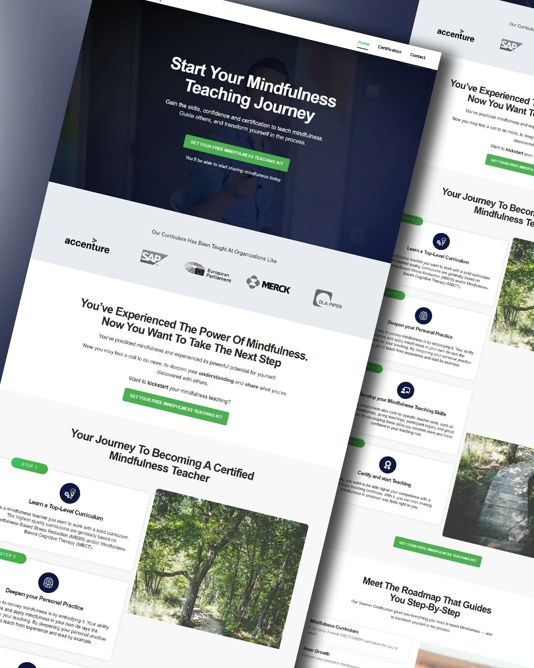 Mindfulness Teaching Journey is a conversion-focused educational website built to guide visitors from initial interest to enrollment in a certified mindfulness teaching program.