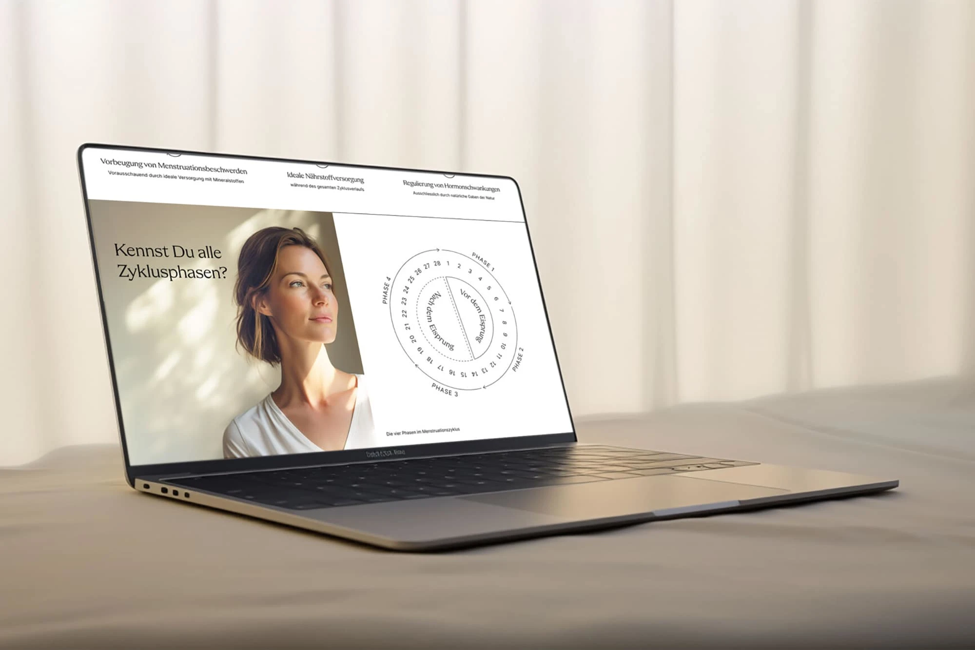 The task was to create a brand identity that reflects the rational, medical side of the brand as well as the pure and high quality of the product - without neglecting the warm, feminine aspect that the topic of the menstrual cycle brings with it.