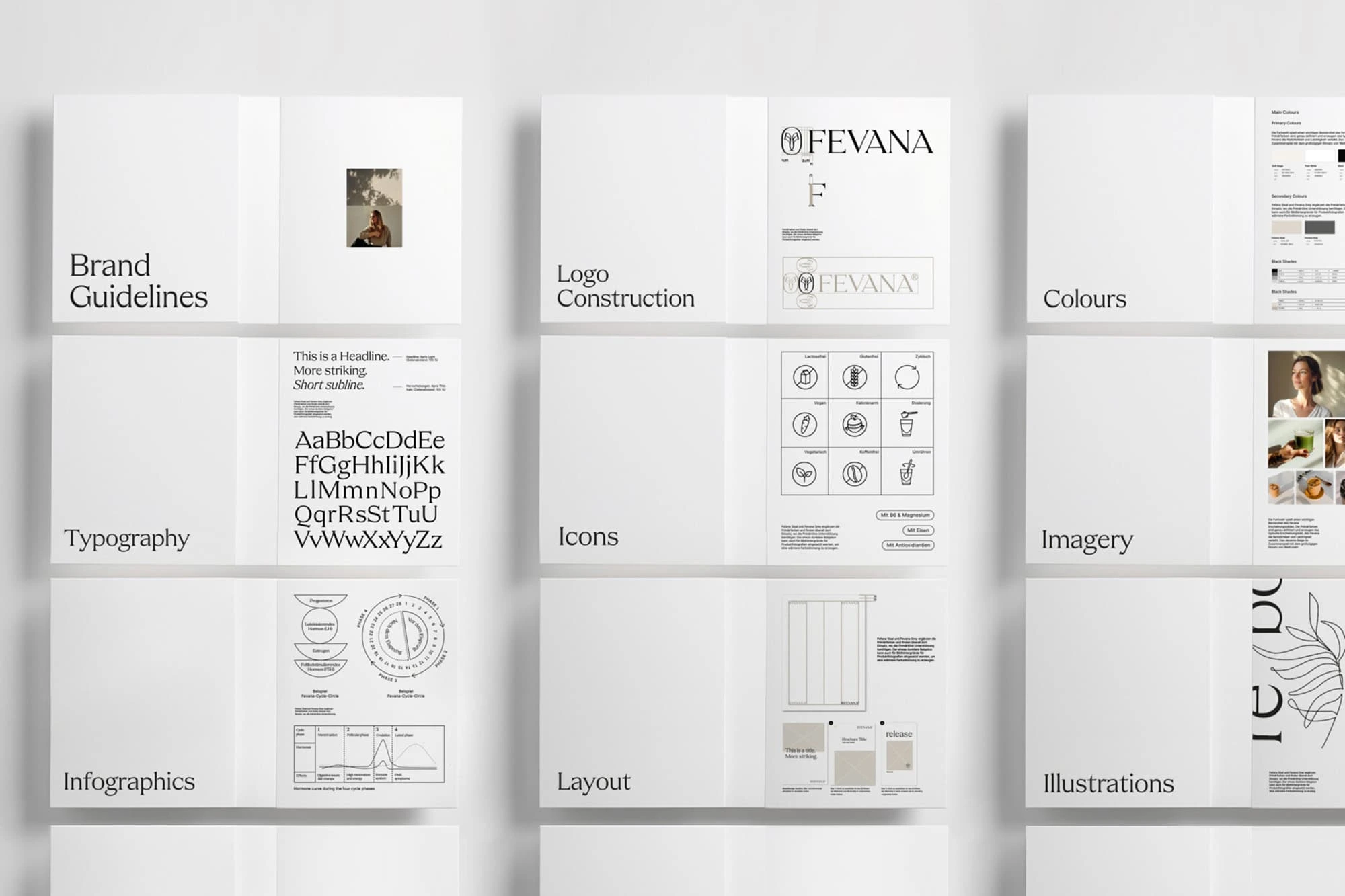 Fevana developed an impeccably harmonized, all-natural supplement blend. This product is intended to proficiently supply the fundamental nutrients required by women across all four phases of their menstrual cycle. As the founders of FEVANA began their product development process, they entrusted me with designing their brand identity from the ground up.