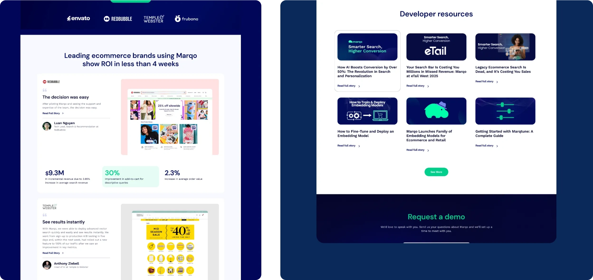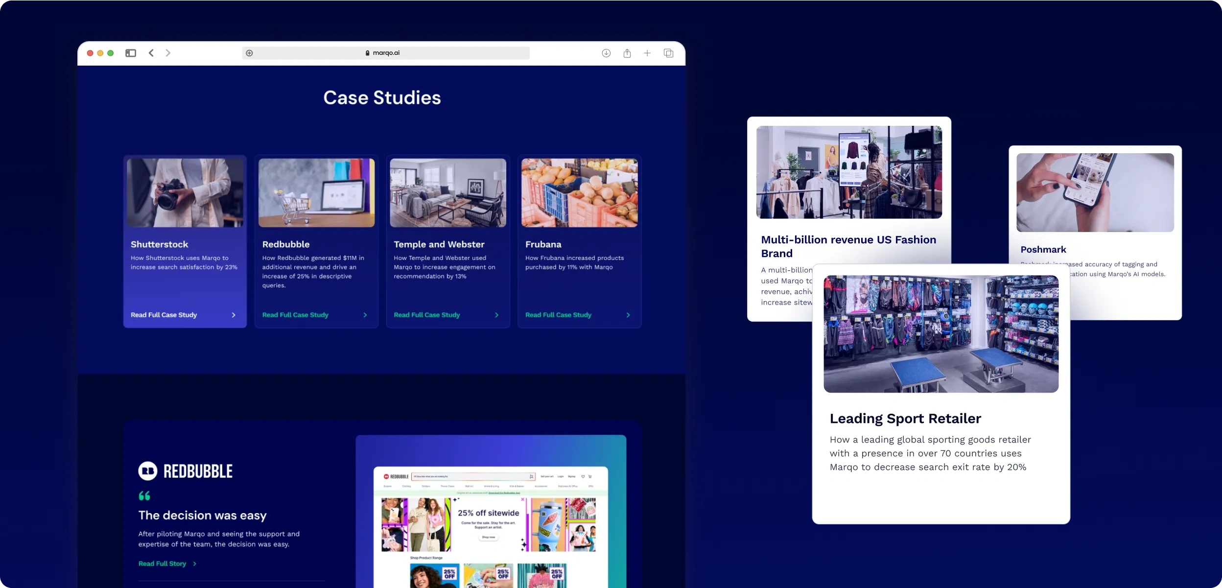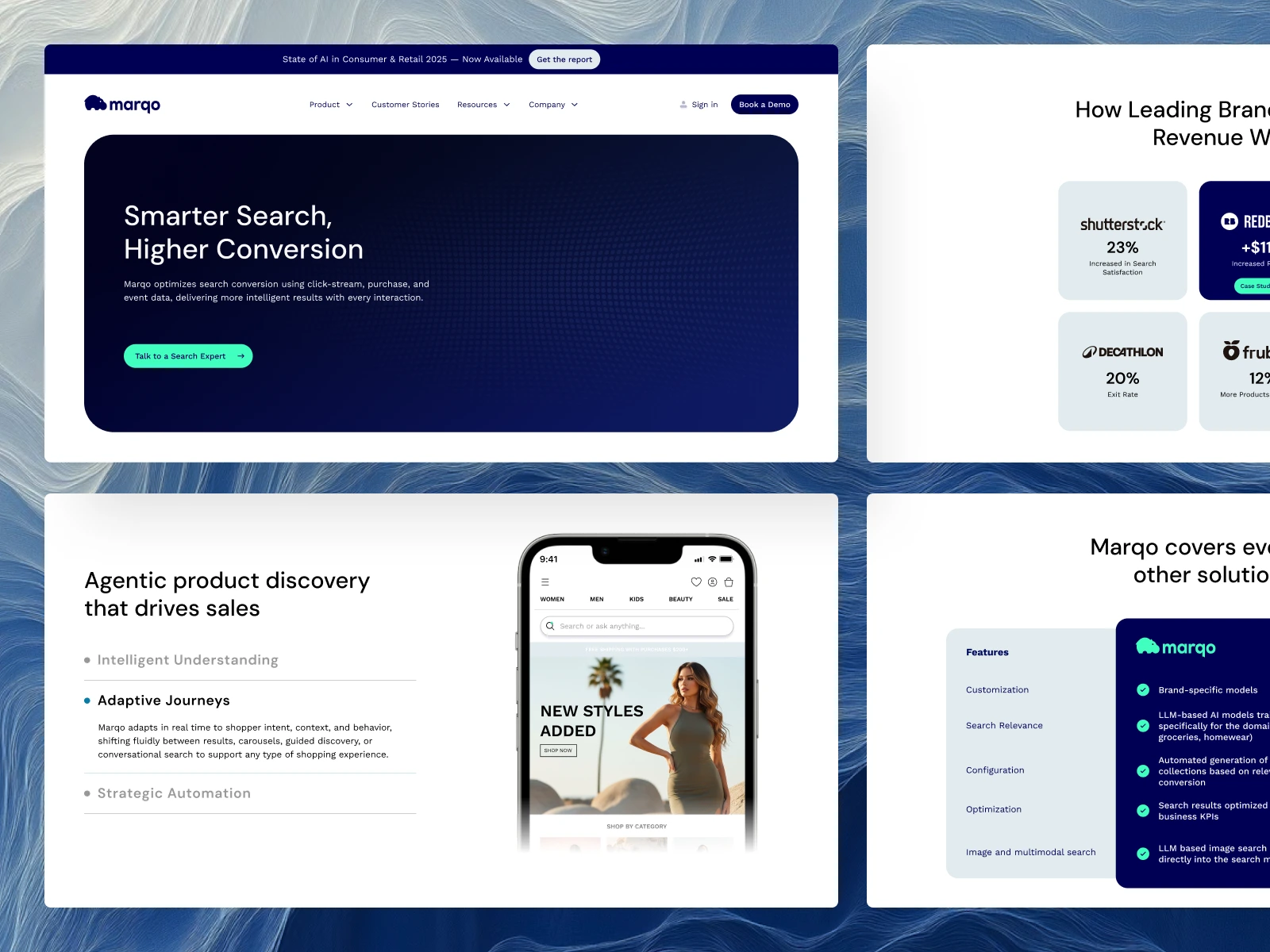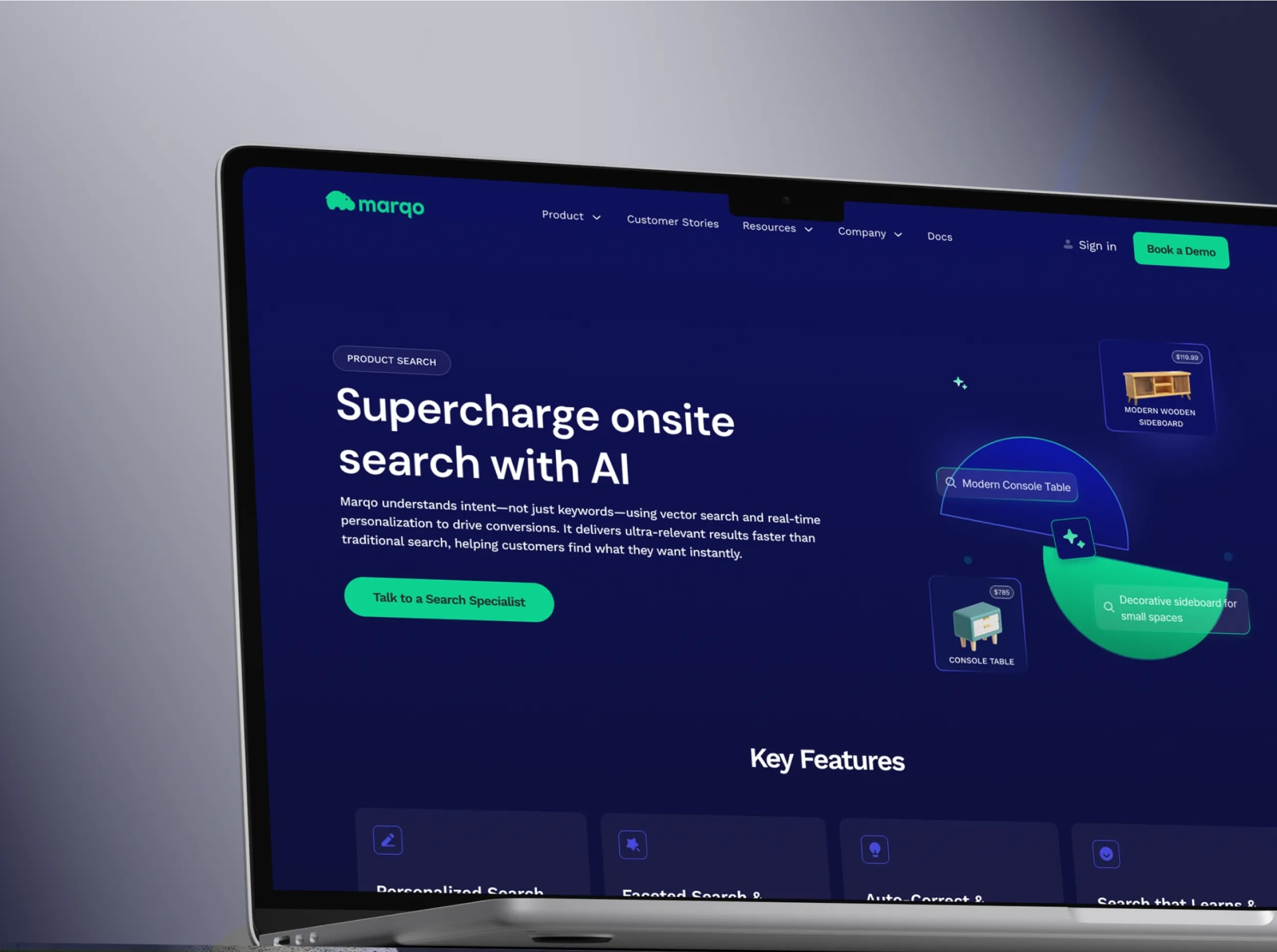 Marqo needed a website that reflected their search technology - intuitive, powerful, and built for discovery. We designed a clean, modern interface that makes complex AI feel accessible, with smooth interactions that guide users naturally through their journey, and architecture that scales with their growth. The result is a site that demonstrates what intelligent search looks like, converting visitors whether they're developers looking for solutions or enterprises ready to transform their search experience.