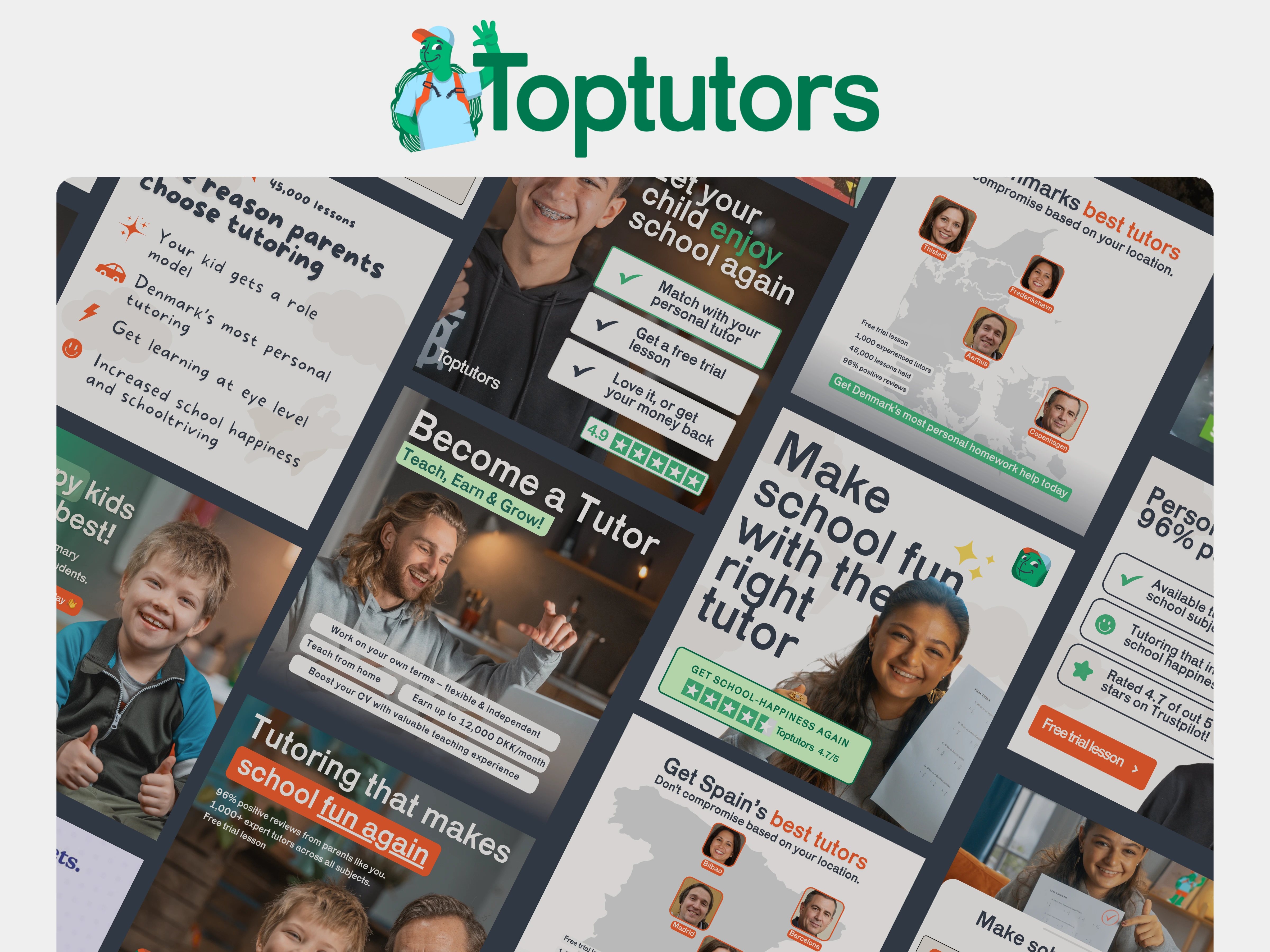 TopTutors, an online tutoring platform, needed engaging Meta ad creatives to connect with parents of school-aged children (ages 7-18). The objective was to design high-converting static ads that focused on the emotional benefits of tutoring such as happier, more confident children rather than just improved grades.