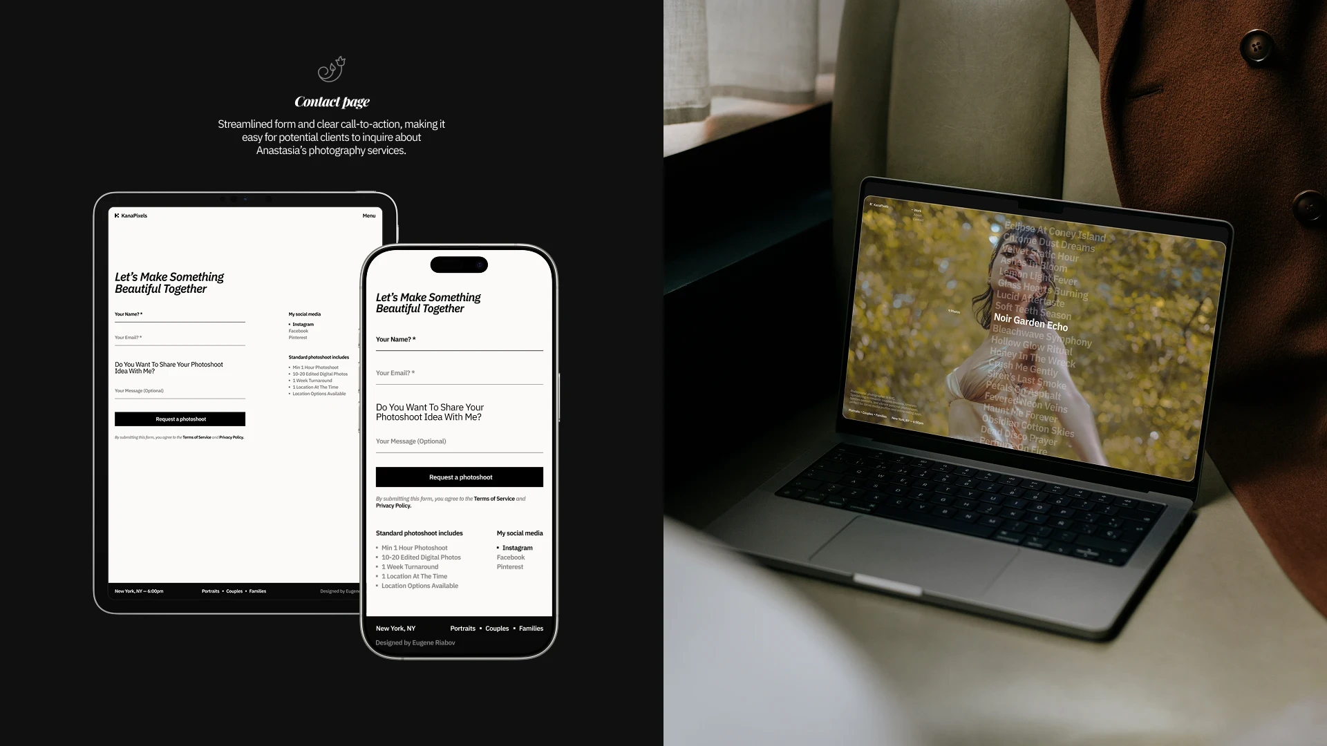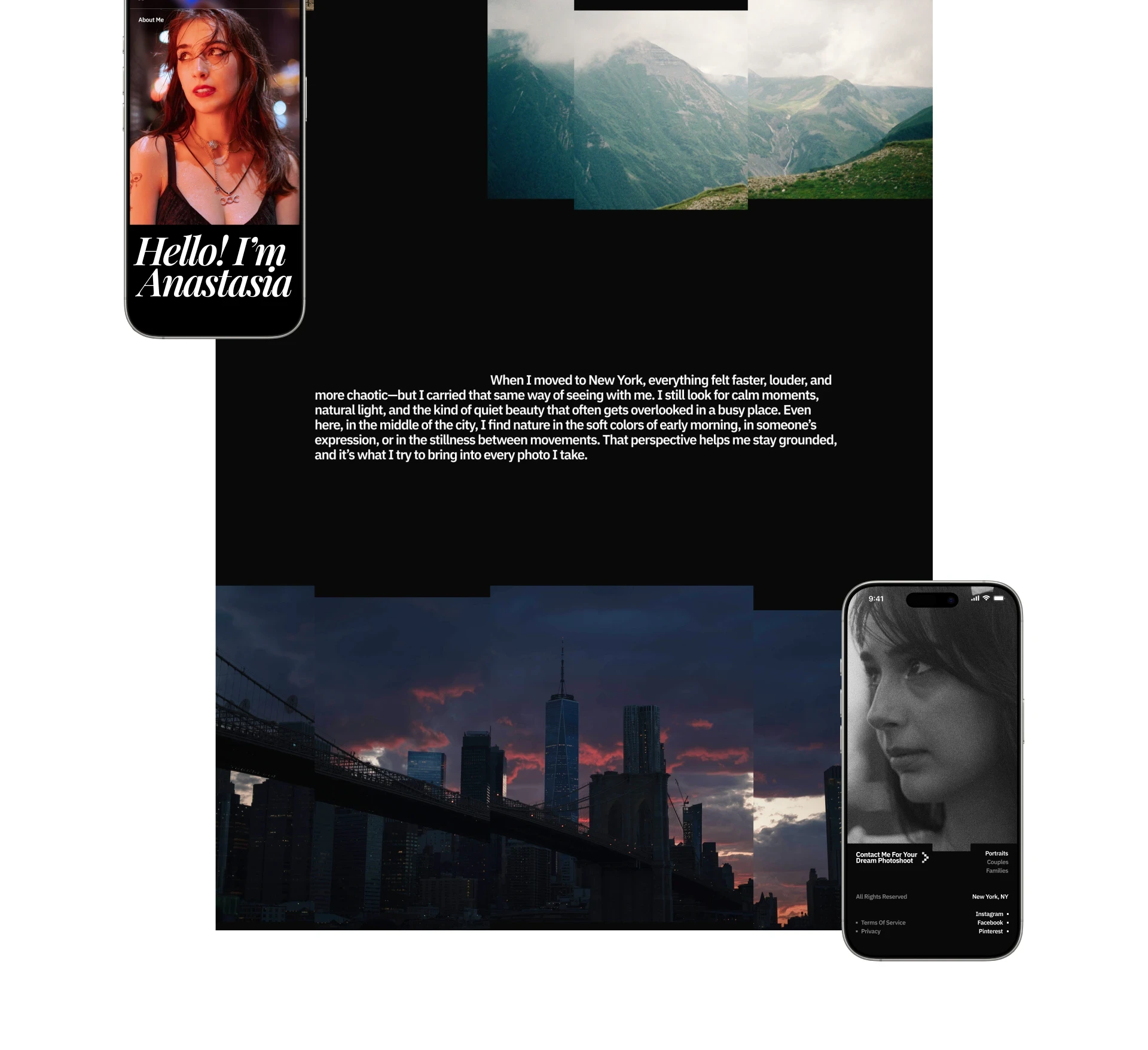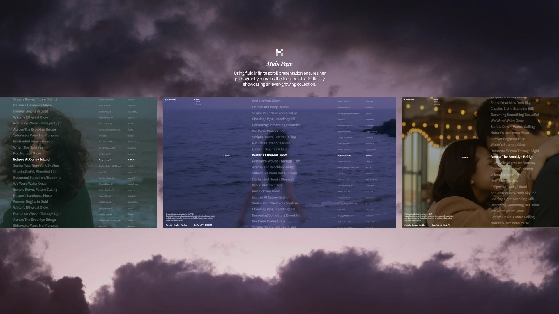 Modern website for NYC based photographer with infinite gallery and focus on top notch high quality photography work.
