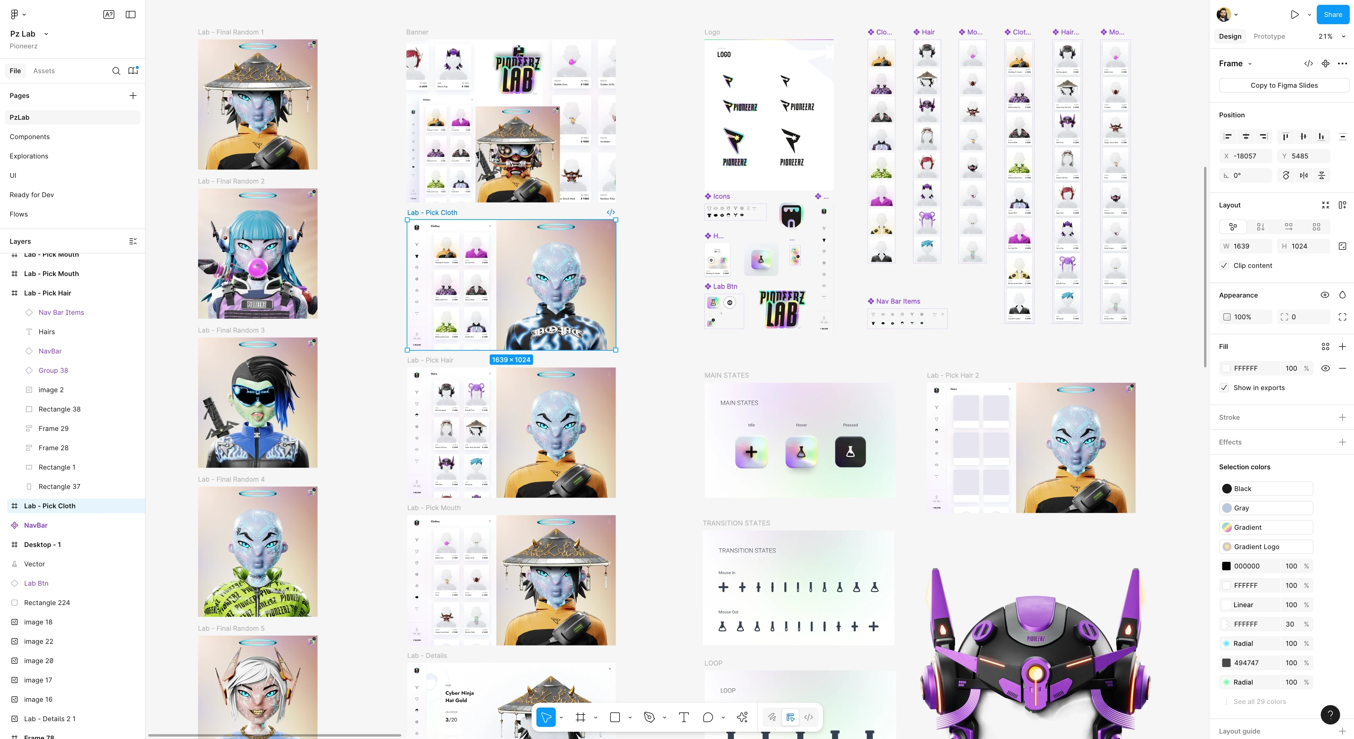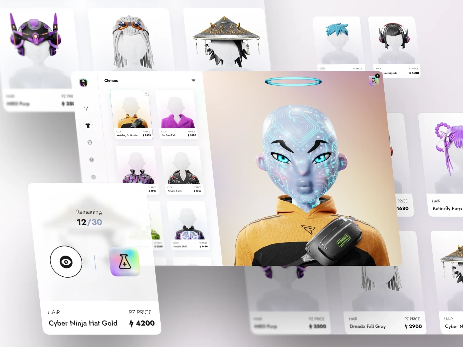 A product design for a platform dedicated to discovering and collecting digital wearables, allowing holders to customize their PIONEERZ NFTs.
