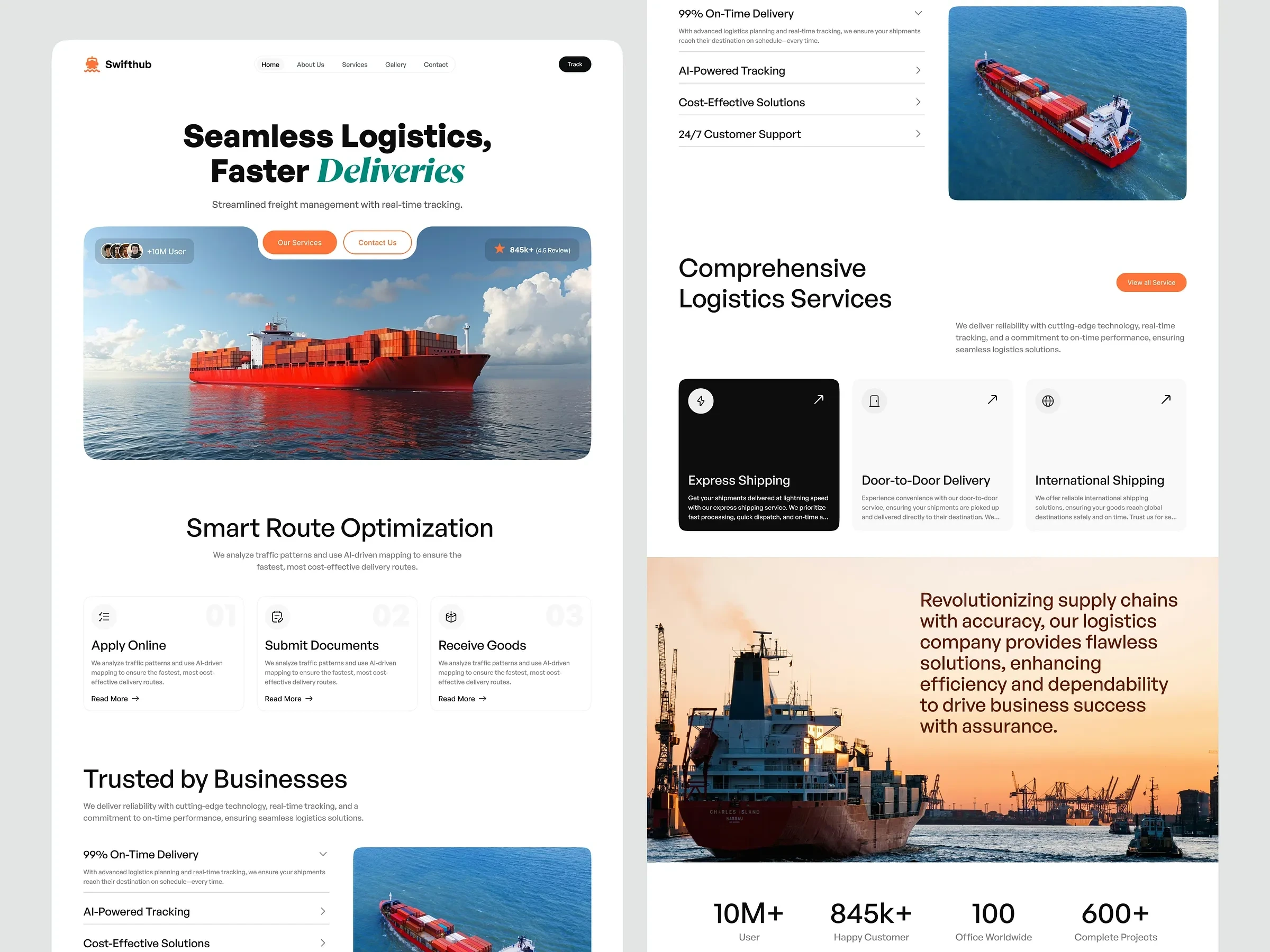 Designed a modern logistics website for SwiftHub to enhance trust and simplify supply chain management.
