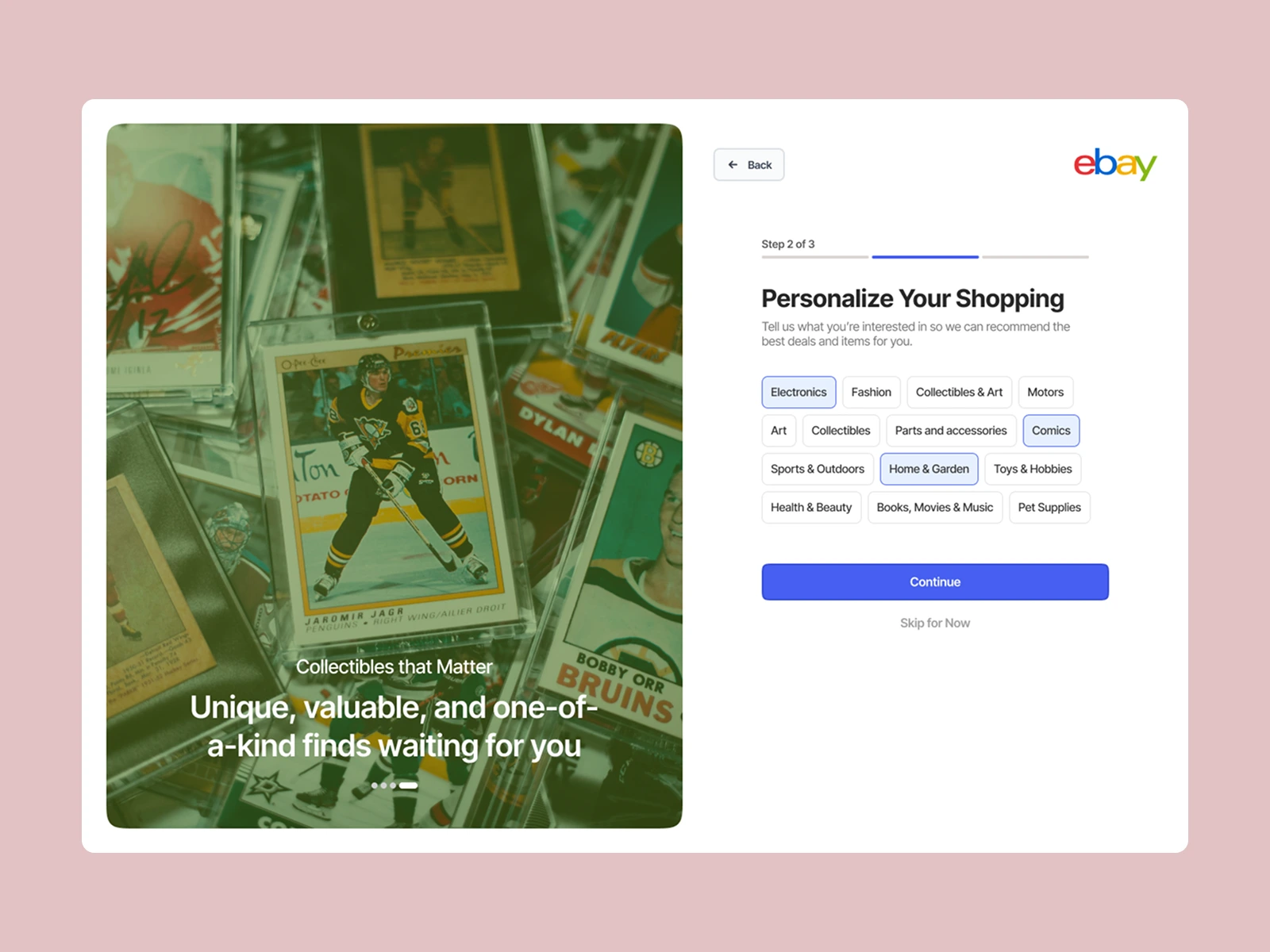 I designed a web onboarding interest picker that makes selecting multiple interests effortless, creating a personalized experience from the very first interaction.
