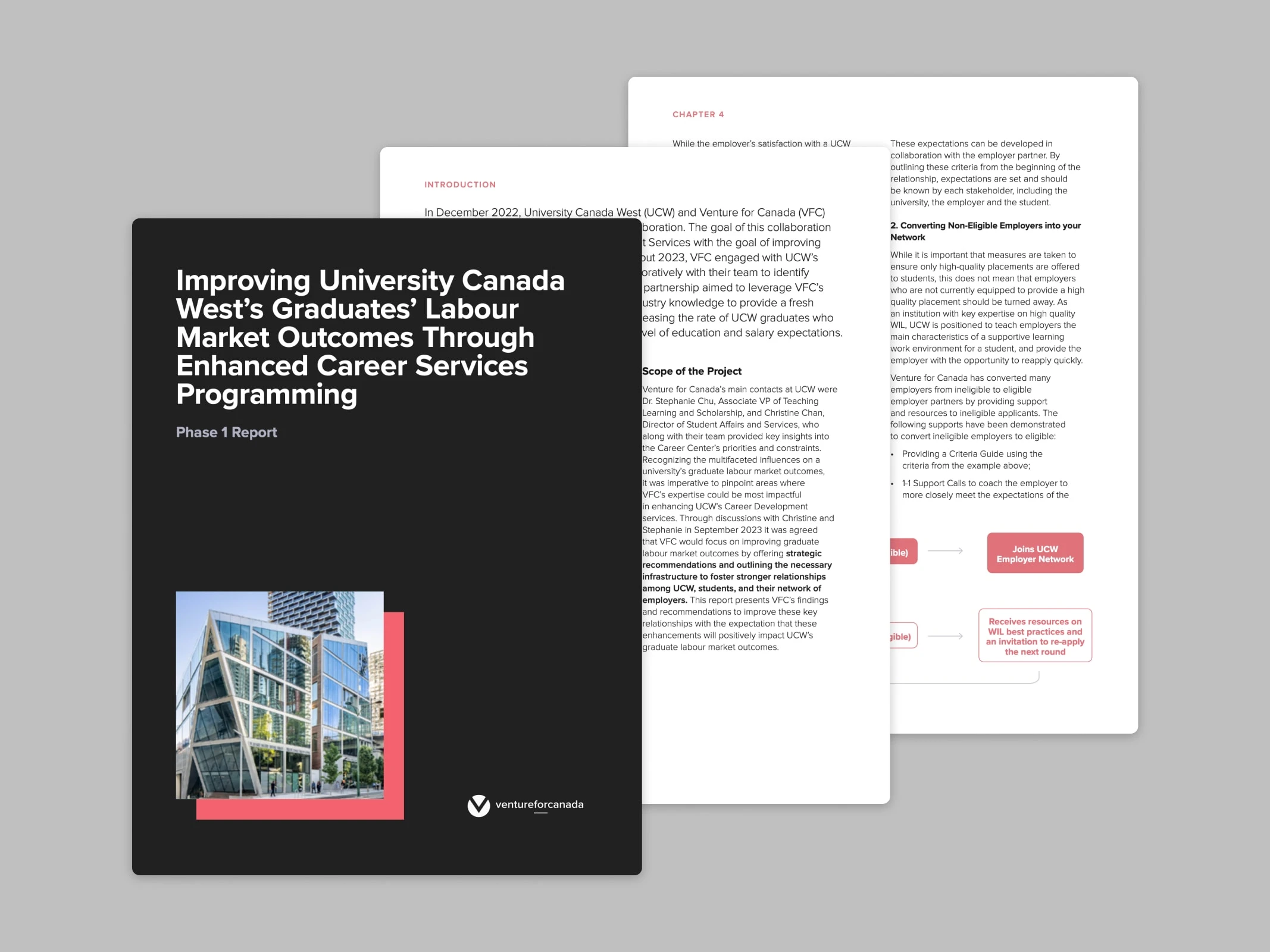 Layout and design of a report for Venture For Canada. Further information are protected by NDA.