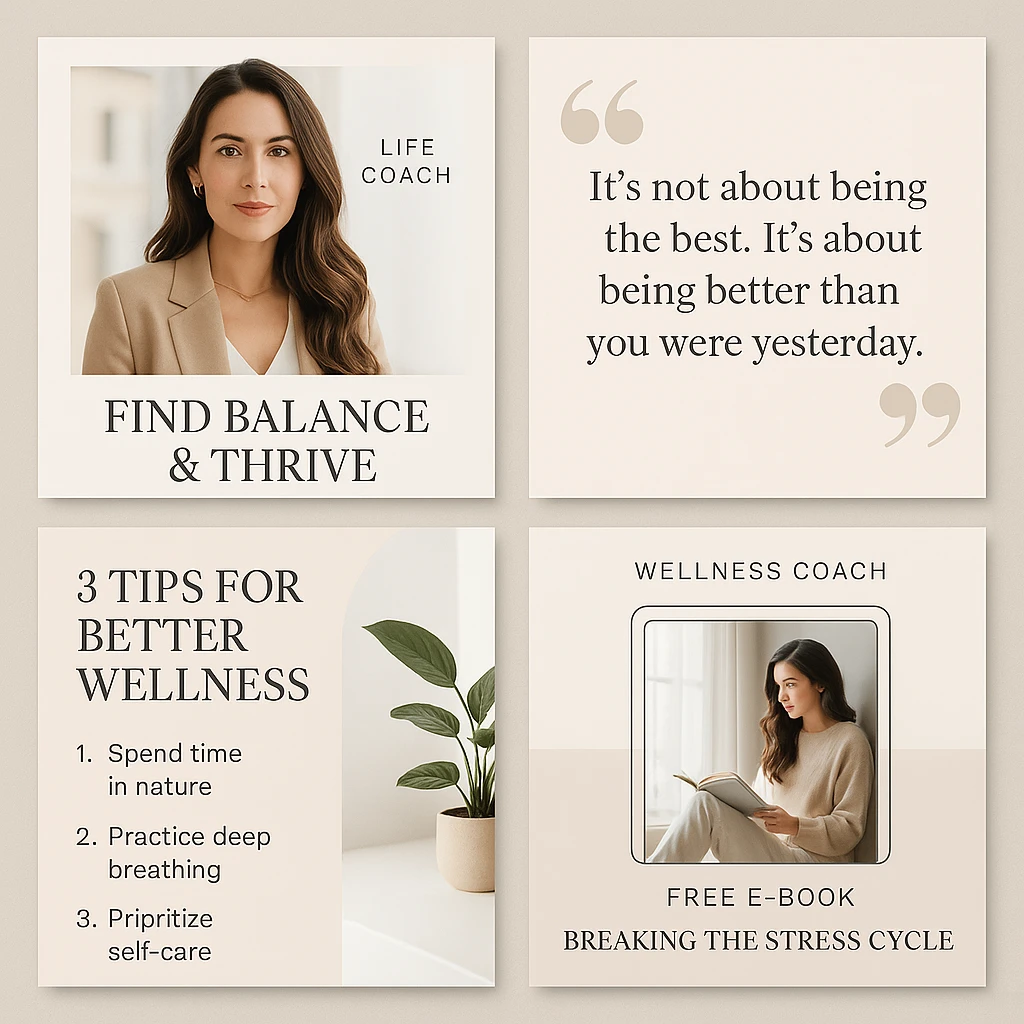 Designed Instagram content for a wellness coach, enhancing engagement and brand identity.