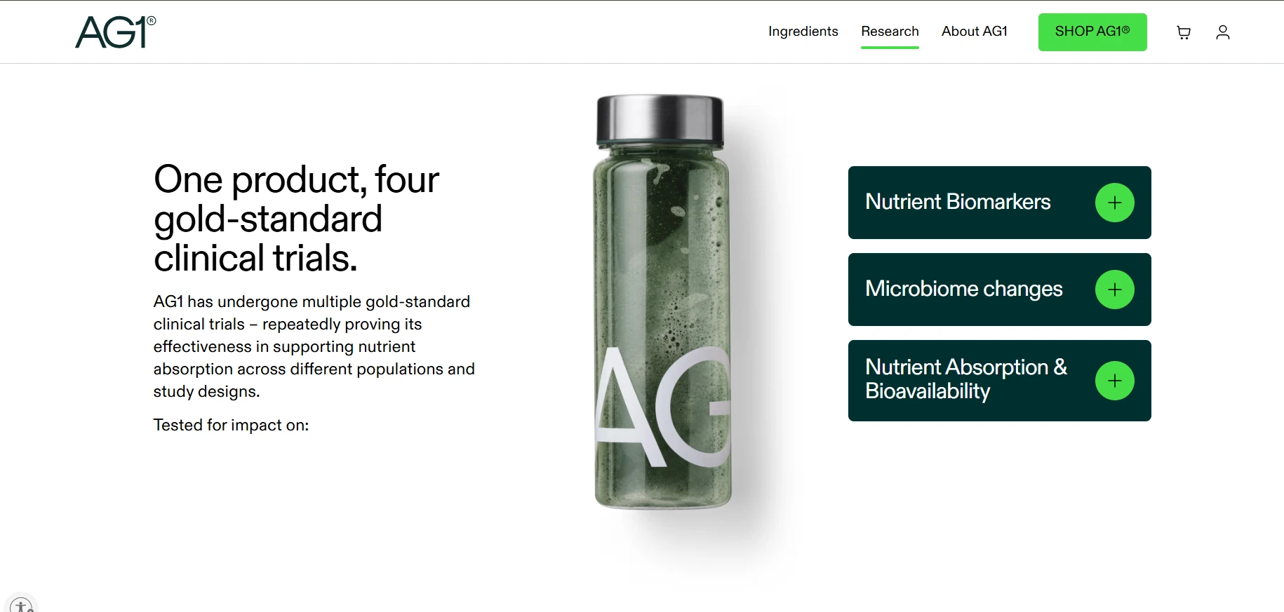Collaborated on AG1's website for a health-focused, conversion-driven design.