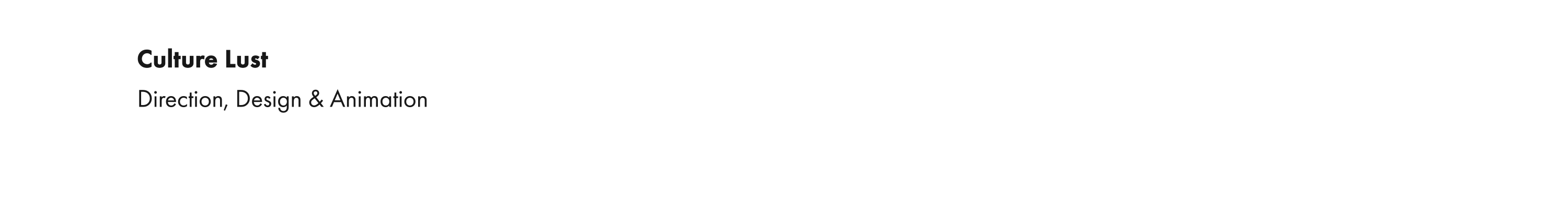 Directed, designed and animated the graphic package for the pilot travel show “Culture Lust”, combining integrated and informative visuals.