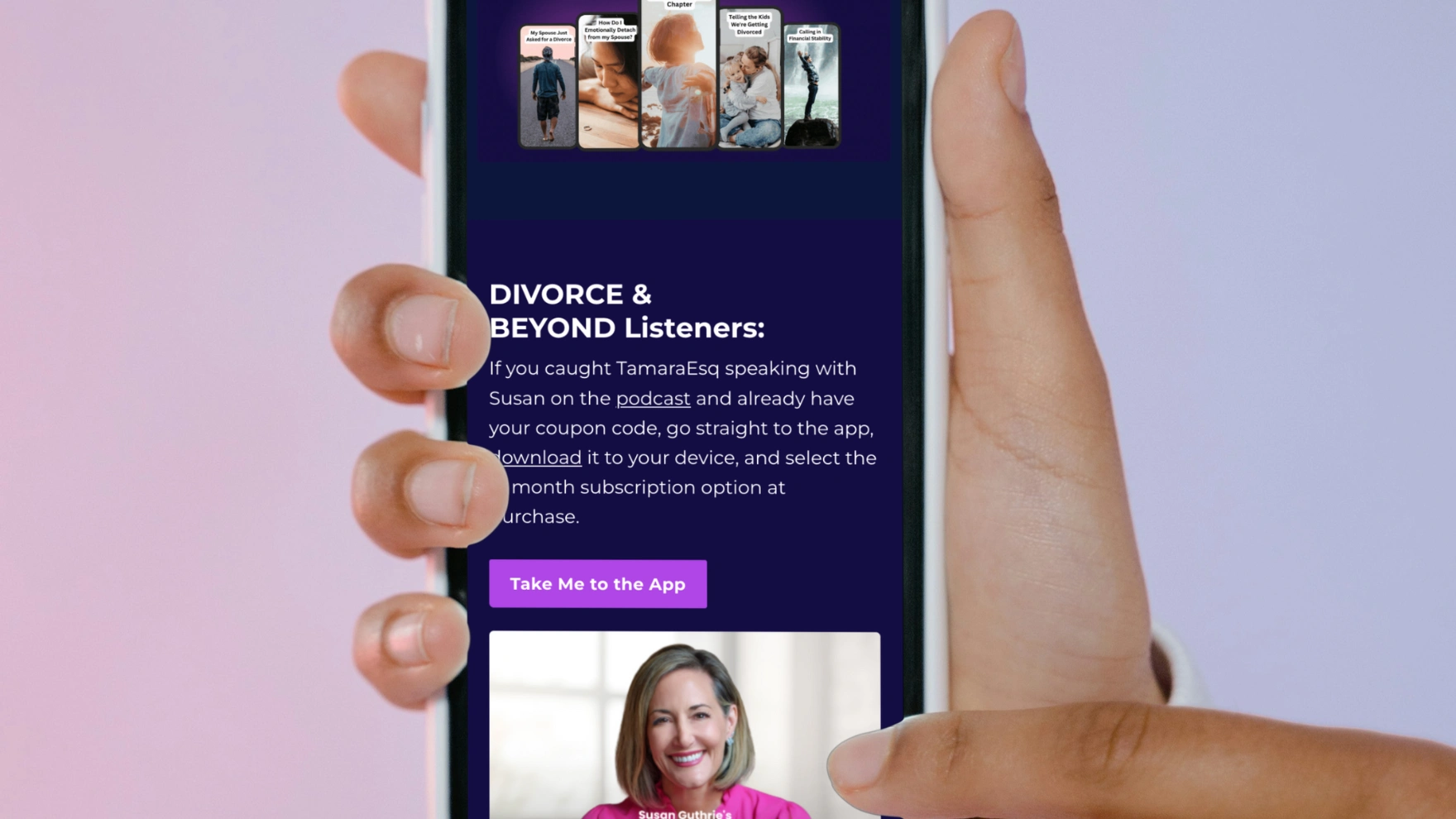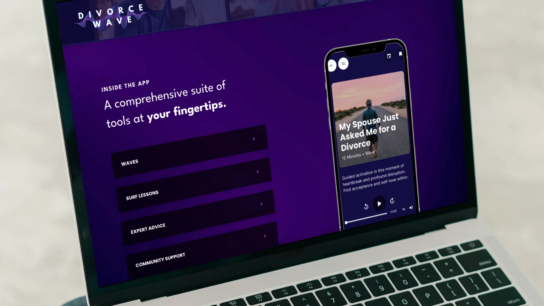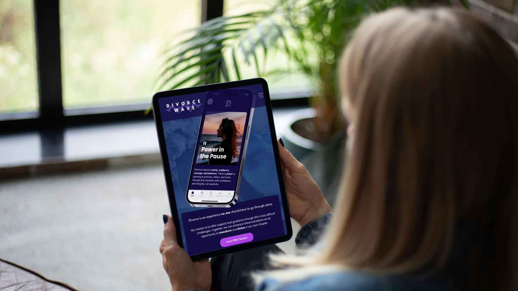 We’re so excited to announce the launch of the brand-new Kajabi custom design for Divorce Wave, the groundbreaking on-demand divorce support app created by the brilliant divorce coach Tamara Rowles. It’s modern, professional, and made to meet users exactly where they are—right in their pocket (or purse/briefcase, backpack), when they need support most. 💗📱