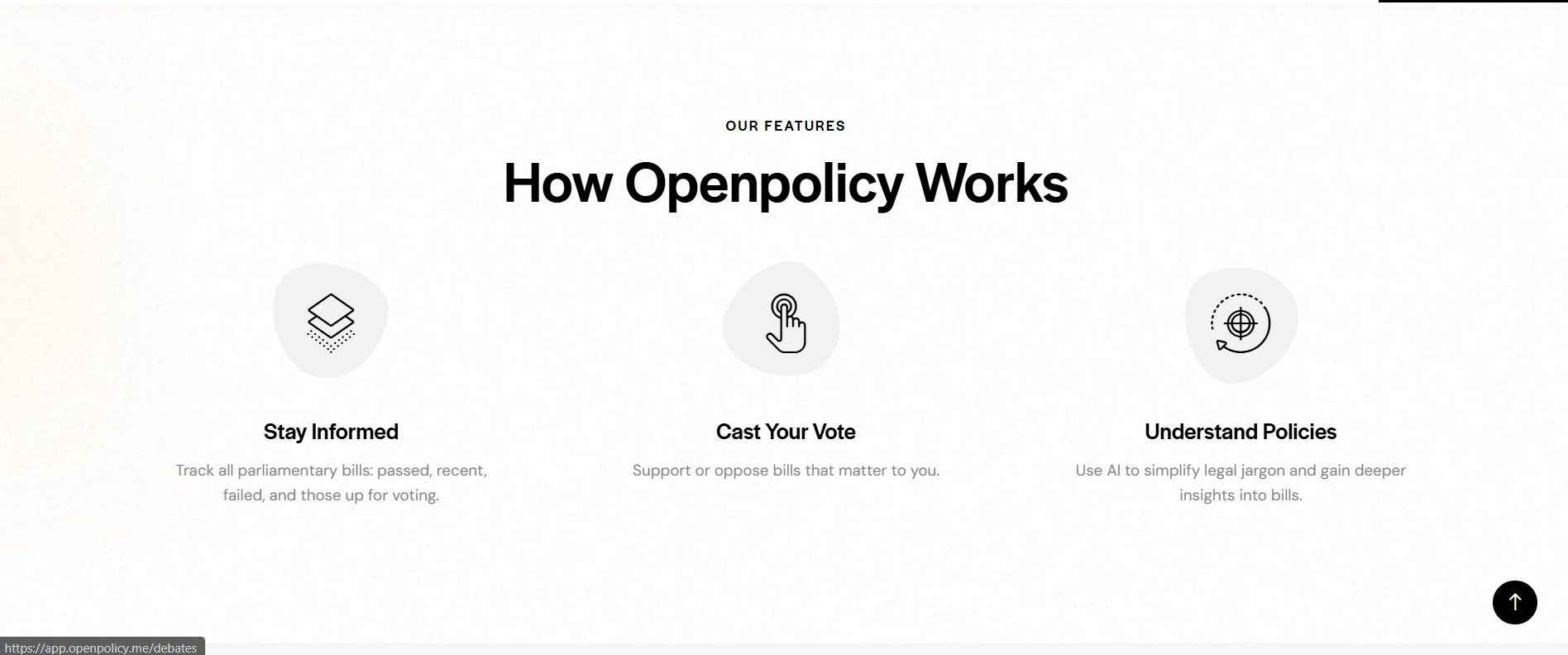 Our platform provides real-time access to parliamentary bills, allows citizens to vote on policies, and fosters direct interaction with representatives.
