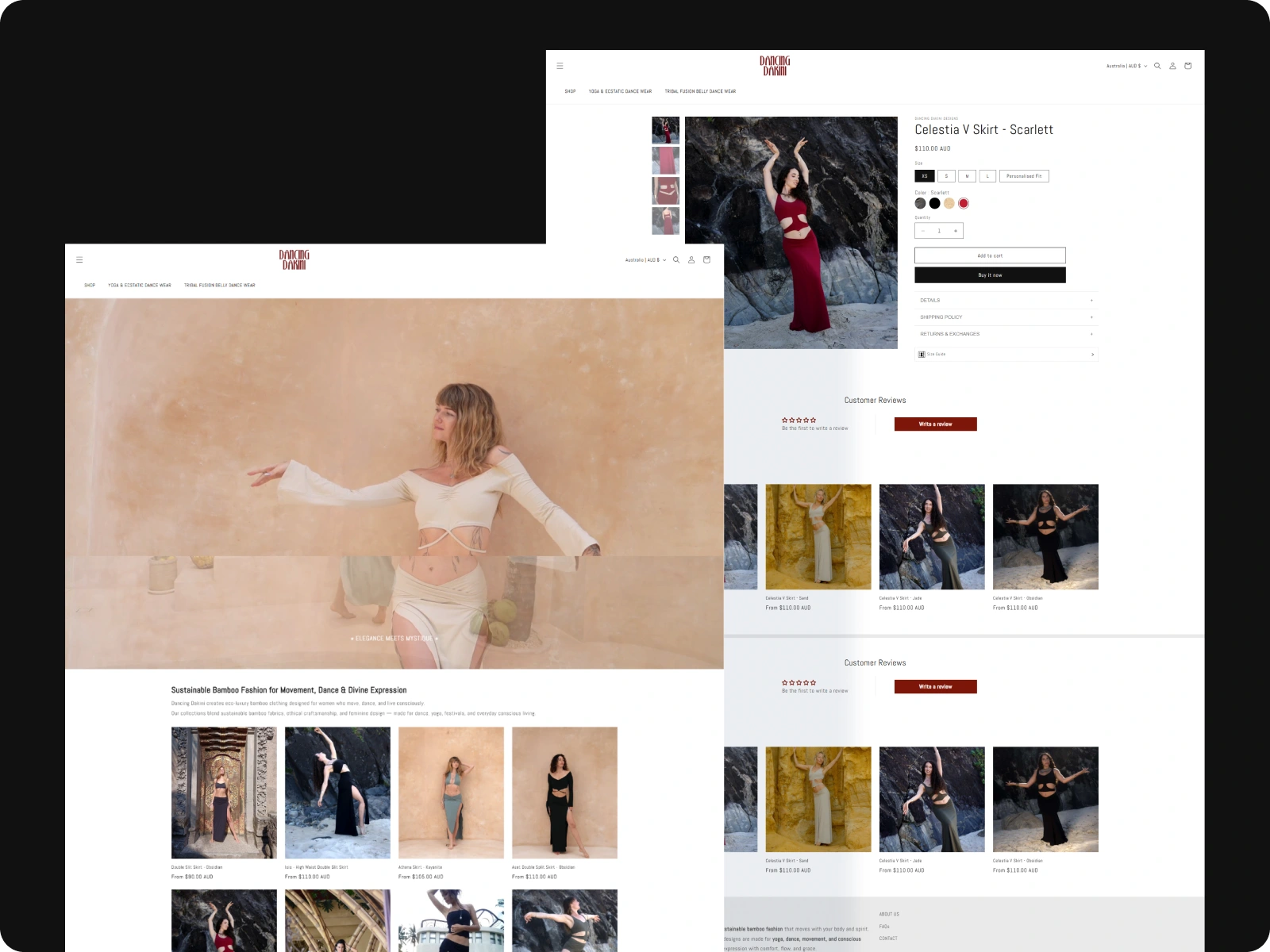 Dancing Dakini is a premium fashion brand focused on sustainable, movement-friendly apparel inspired by dance, yoga, and artistic expression. The goal was to create a