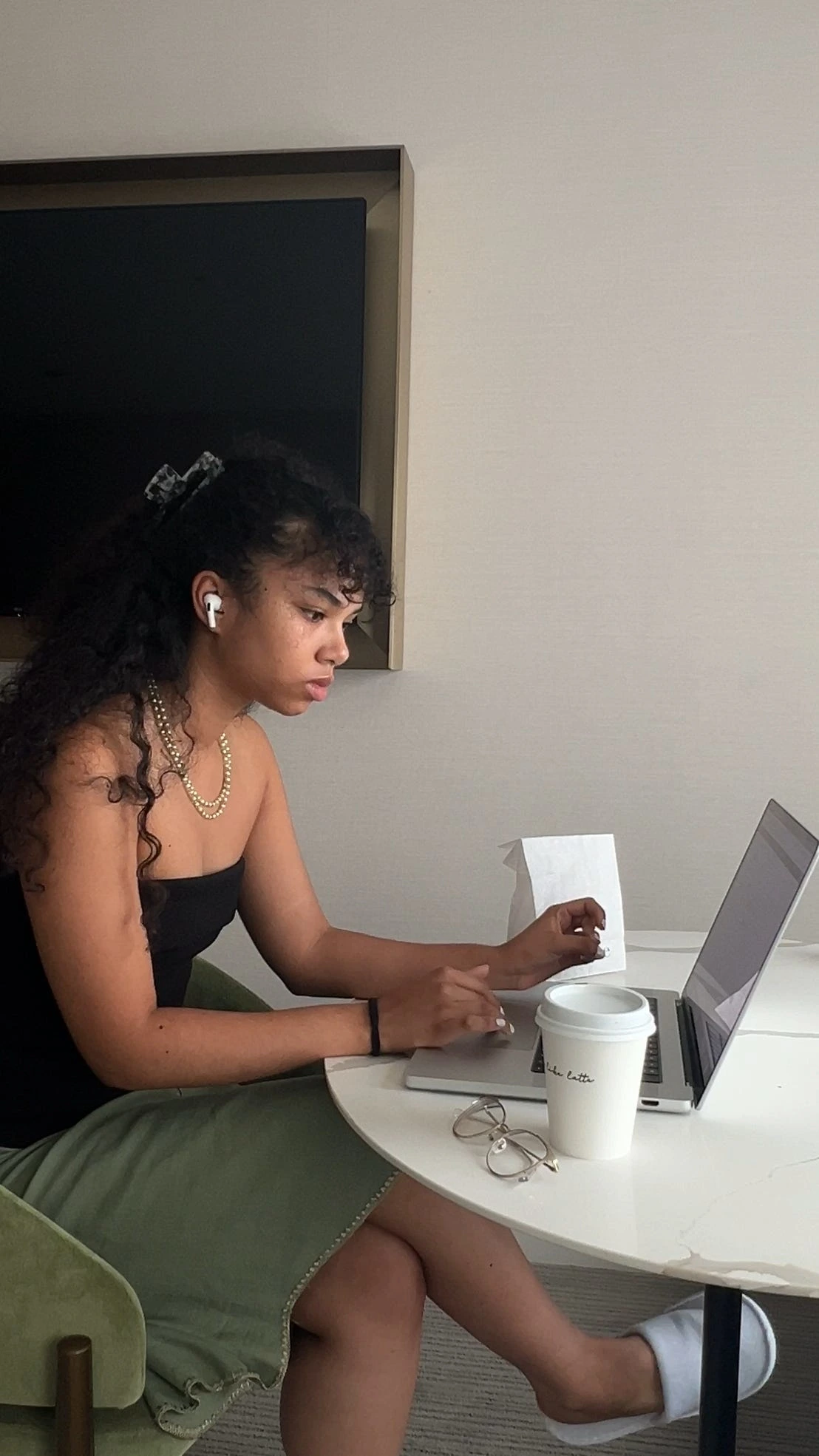 So I got myself my favorite pistachio latte, and monkey bread from my local Tatte Bakery, I set my camera up on my hotel bed, got my laptop out, and decided to film myself working. I didn’t know how I’d use this but I knew this could help.