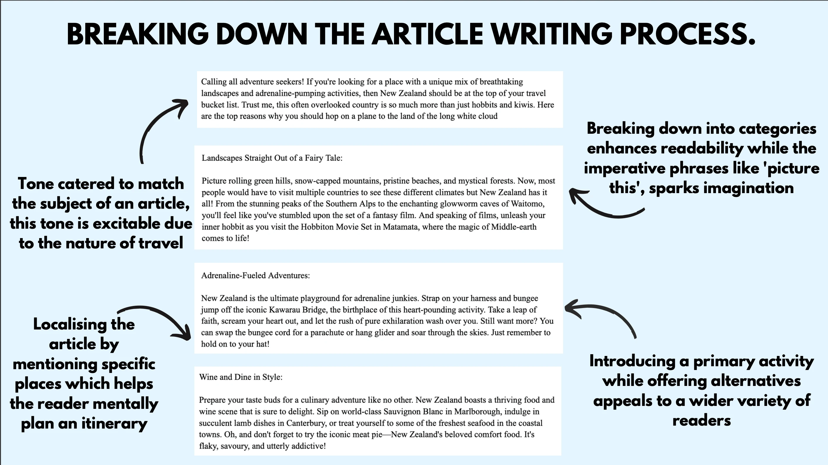 Many writers craft content based on intuition, which isn’t necessarily a bad thing. However, I employ precise formulas and thoughtful reasoning behind every word I select, ensuring a strategic approach to writing. Take a lot at my process below.