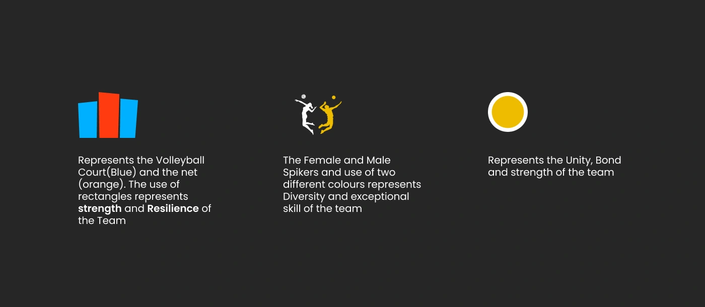Logo: The logo is a fusion of symbolic and dynamic volleyball elements, reinforcing the club's unique identity within the university.