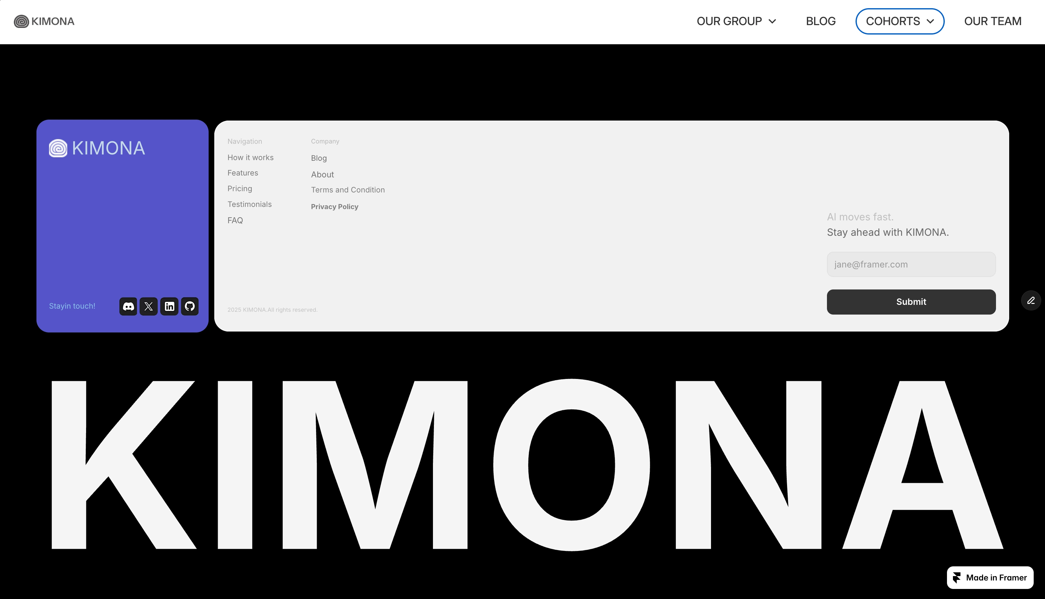 Kimona immediately communicates that it operates at a strategic level. The messaging is concise, confident, and outcome-oriented — speaking directly to founders and leadership teams who value direction and structured thinking.