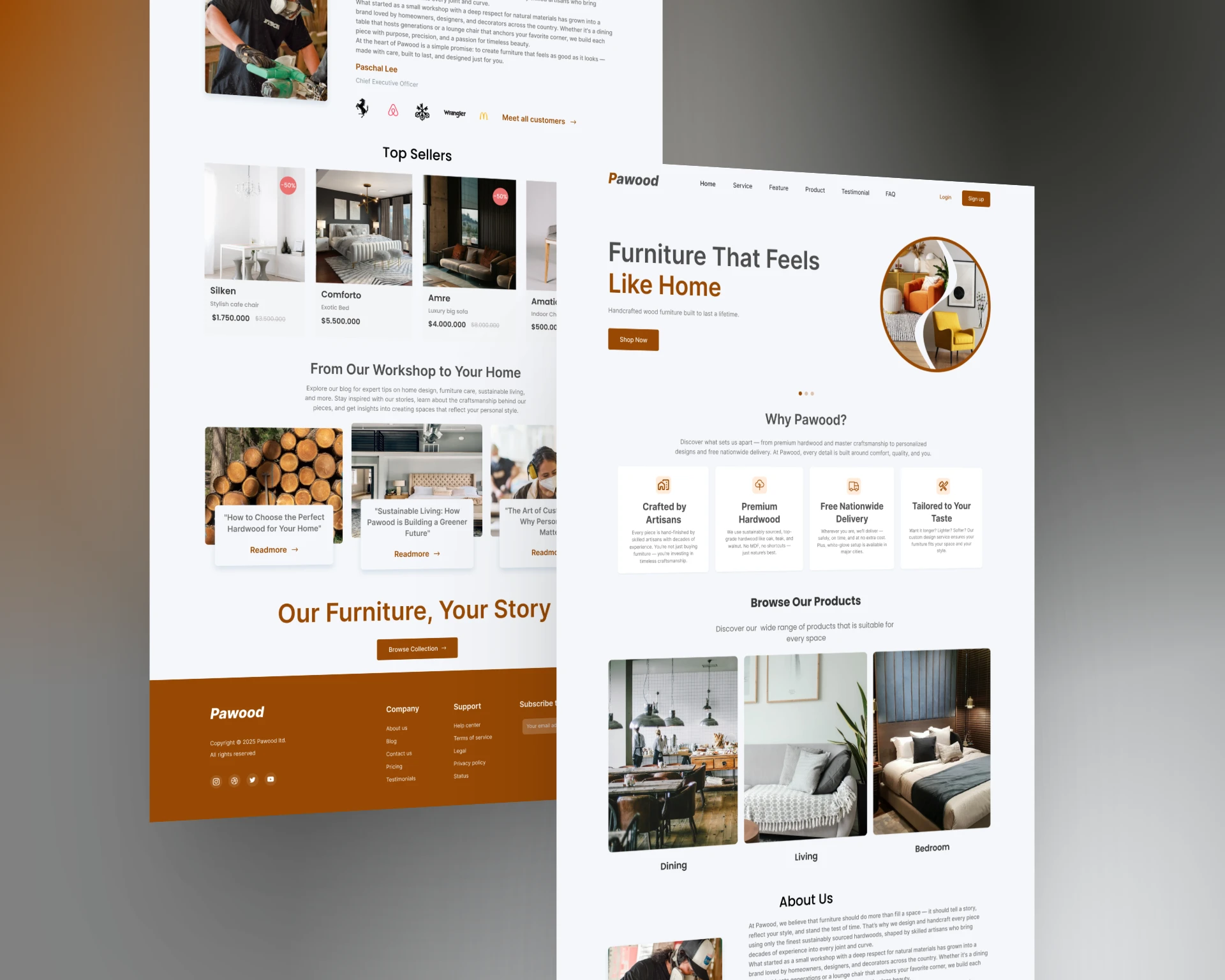 Pawood is a premium handcrafted furniture brand focused on sustainable materials and timeless craftsmanship. The goal of this project was to design a warm, trustworthy, and conversion-friendly web application that reflects Pawood’s values — and turns curious visitors into confident customers.