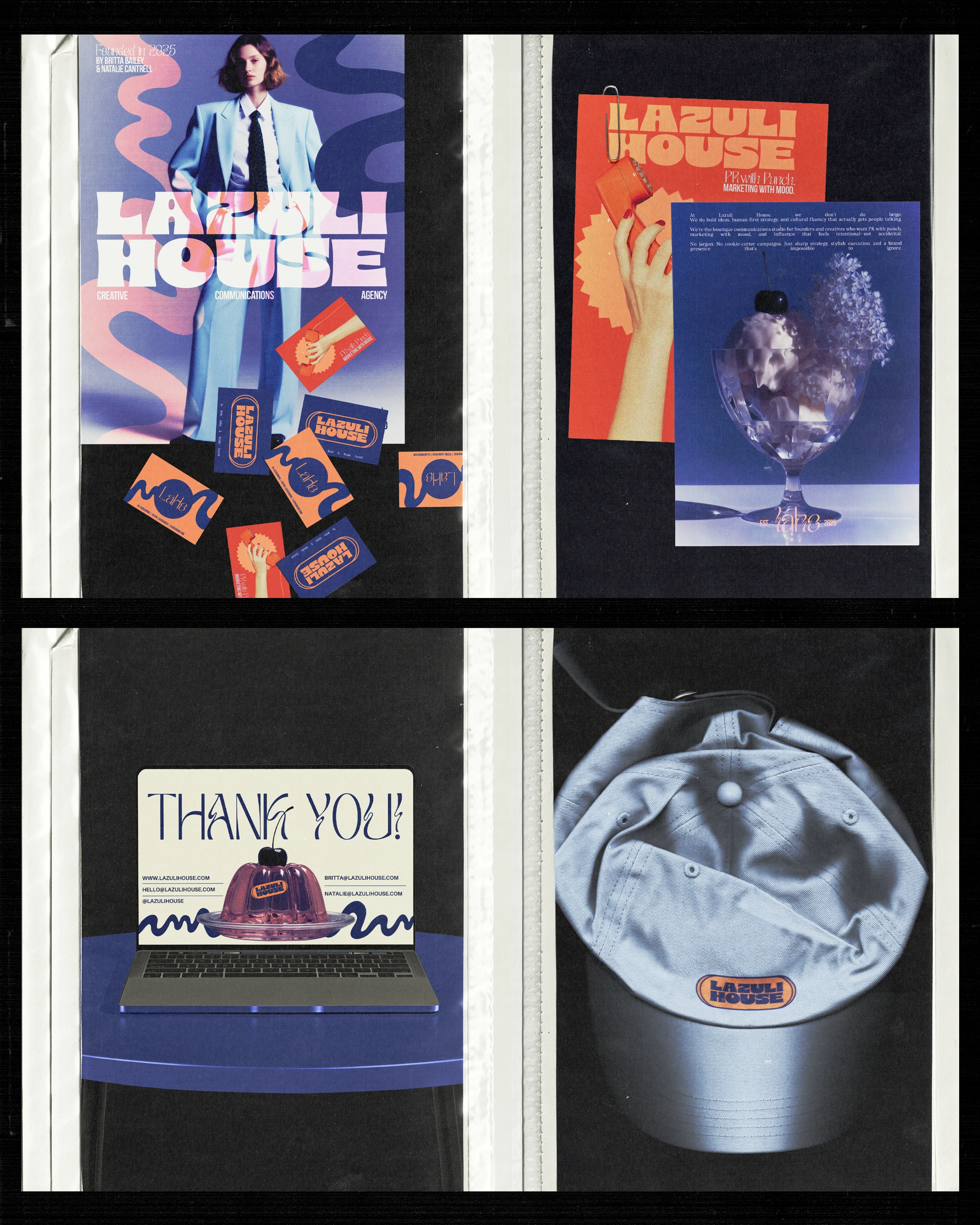 From proposals and brand decks to social assets and print collateral, the identity was designed to scale naturally across touchpoints — always feeling cohesive, expressive, and recognizably Lazuli House. The system allows the brand to show up confidently in both strategic and creative contexts.
