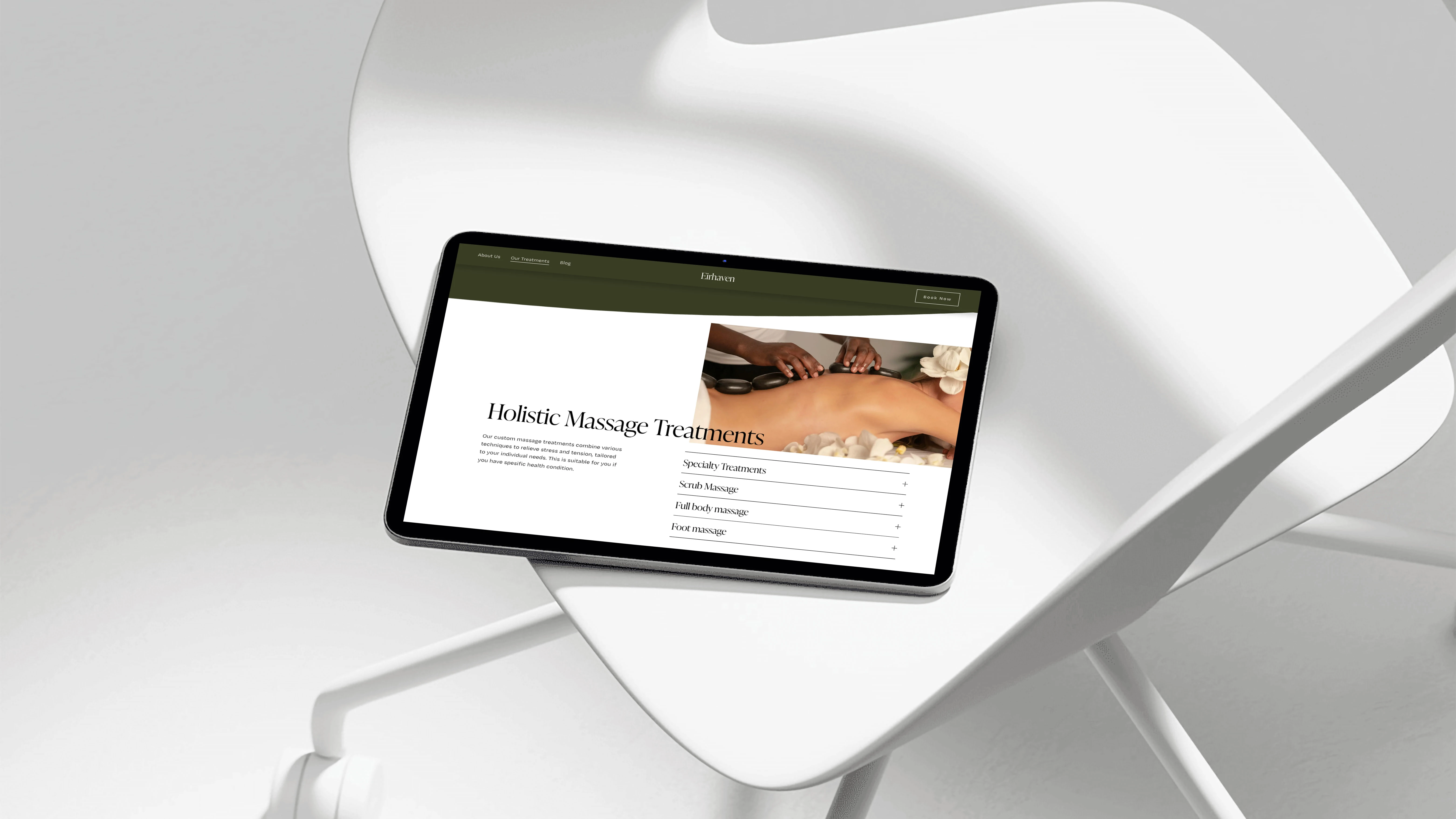 Eirhaven Spa is a luxury wellness devoted to restoration, balance, and the art of slowing down. Rooted in nature and designed for deep calm, the brand treats wellness as a return to self. The digital experience needed to reflect that philosophy. Not loud. Not performative. But spacious, grounded, and emotionally soothing, mirroring the physical experience of the treatment itself.