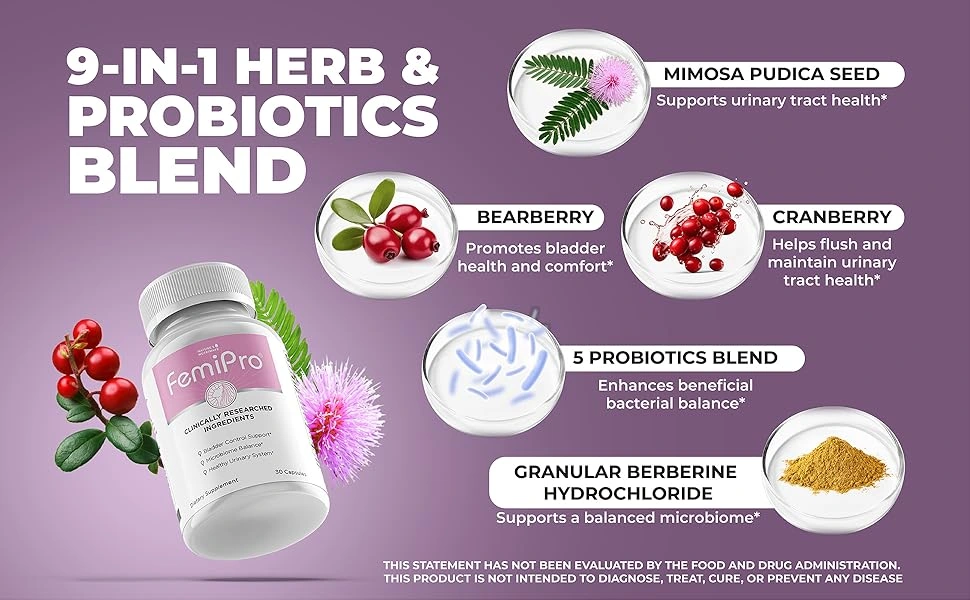 urinary health, include Mimosa Pudica, Bearberry, Cranberry Extract,