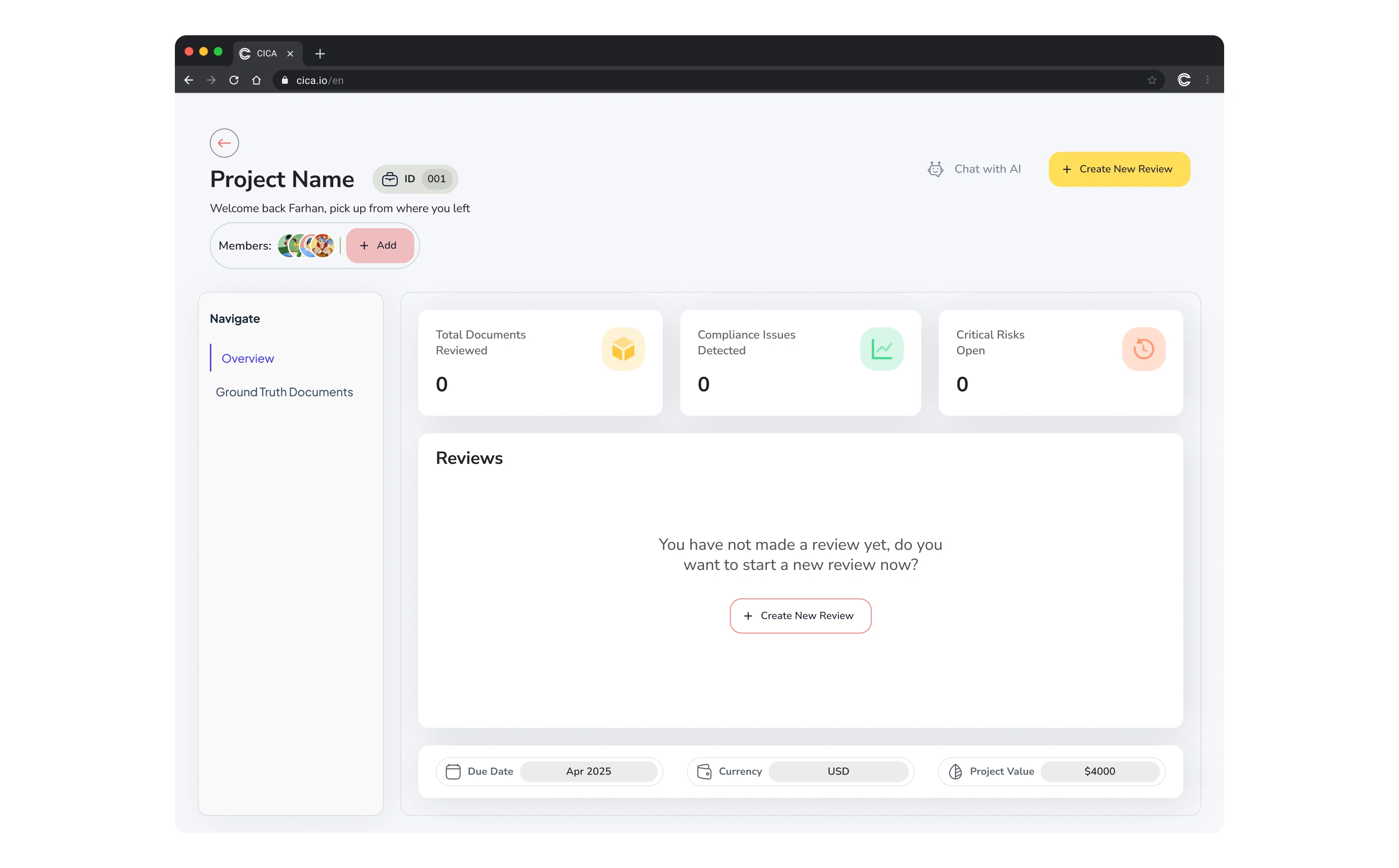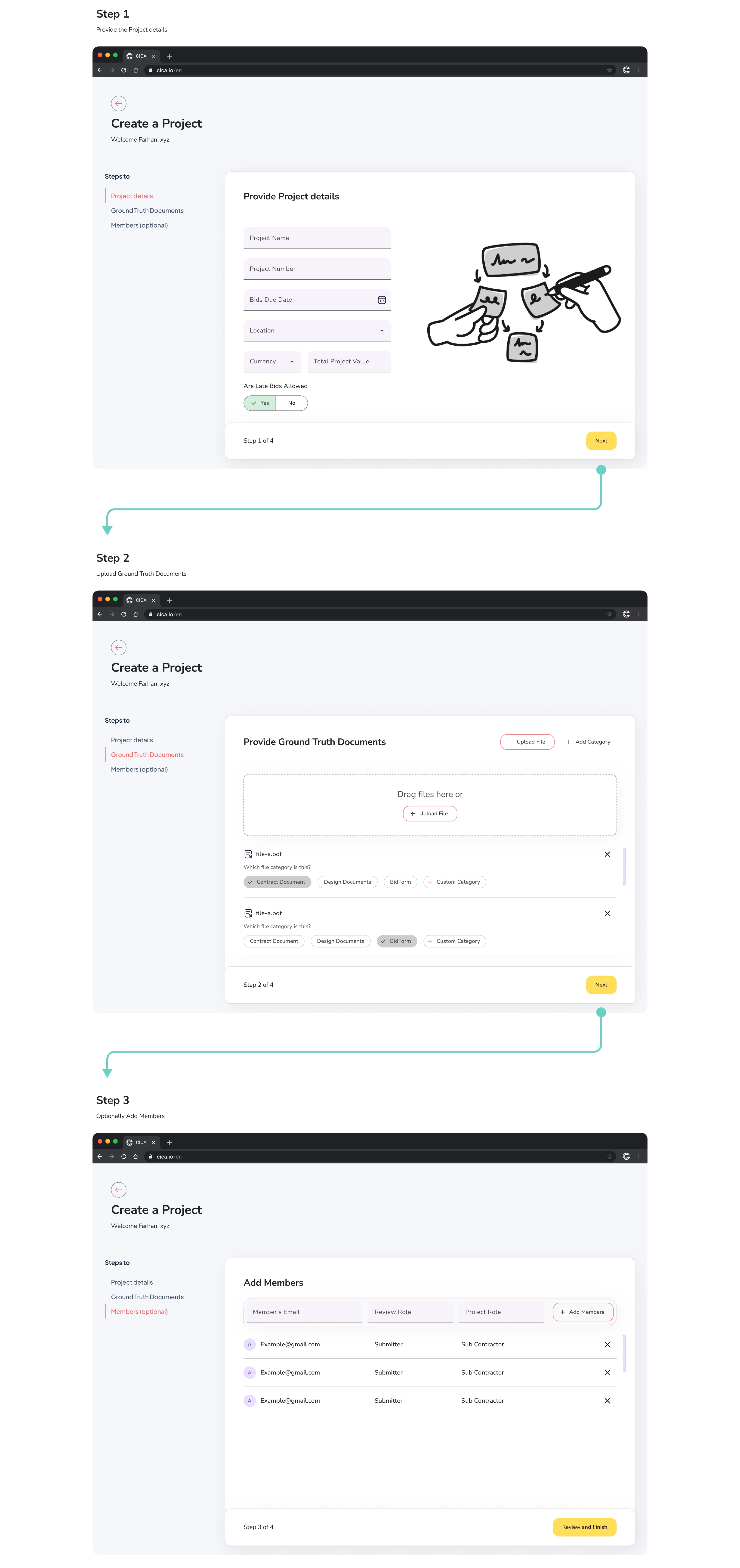 The Onboarding Wizard: I streamlined project initiation into a simple 3-step process. By separating project details, "Ground Truth" standards, and member management, we ensured that setting up a million-dollar audit feels manageable rather than overwhelming.