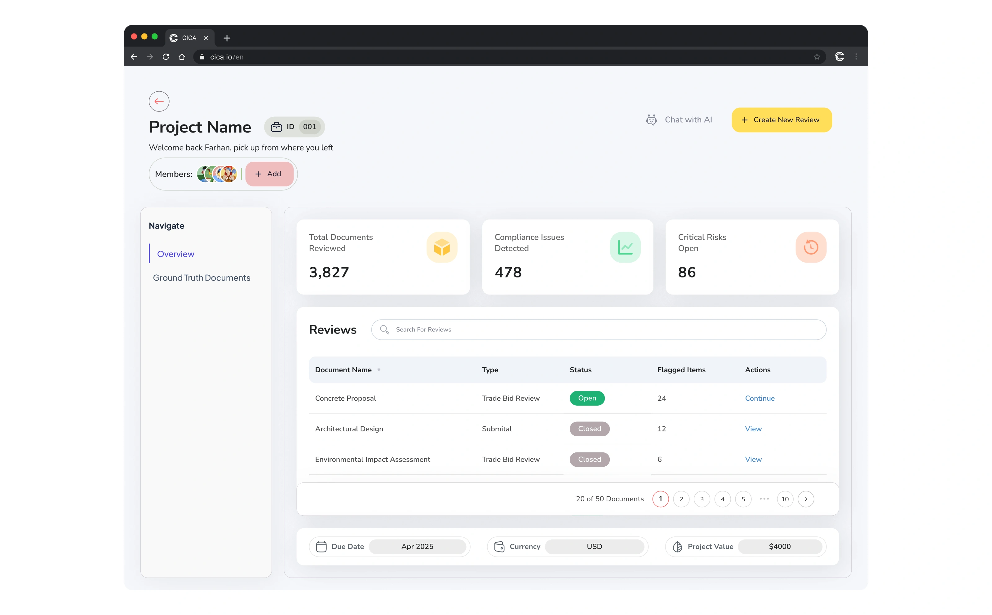 The core USP of CICA is its ability to flag risks automatically while keeping a human in the loop. I developed a specialized workspace to make this possible: