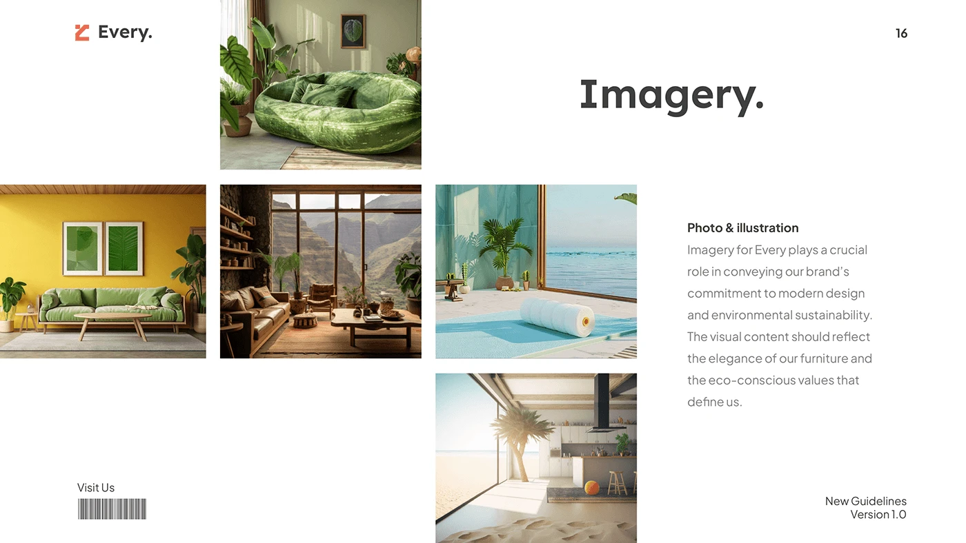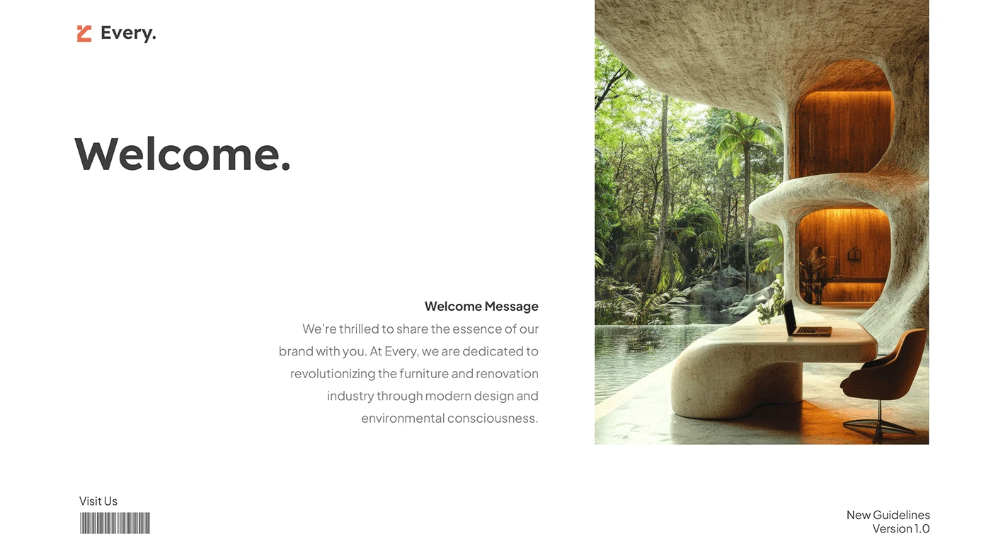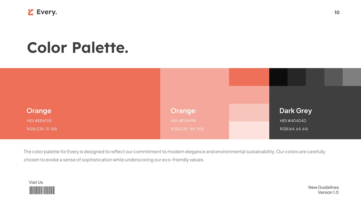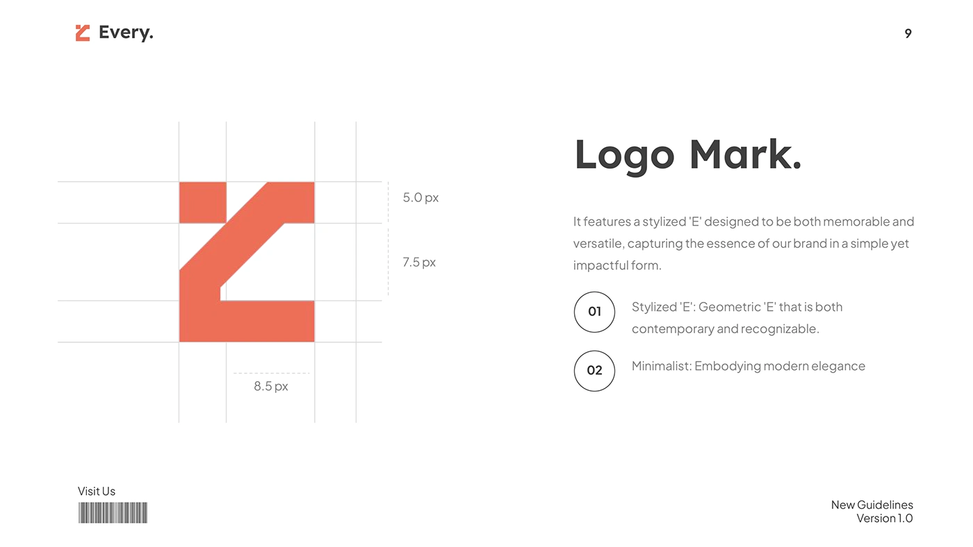 The Every logo and brand guidelines are designed to embody the brand’s core values of "Nature’s Luxury, Crafted with Care." The logo features a modern, stylized "E" that symbolizes both elegance and a commitment to sustainability. The brand guidelines ensure a consistent presentation across all platforms, detailing the correct use of the logo, color palette, and typography. By following these guidelines, Every maintains a cohesive visual identity that reflects its dedication to premium craftsmanship and environmental responsibility.