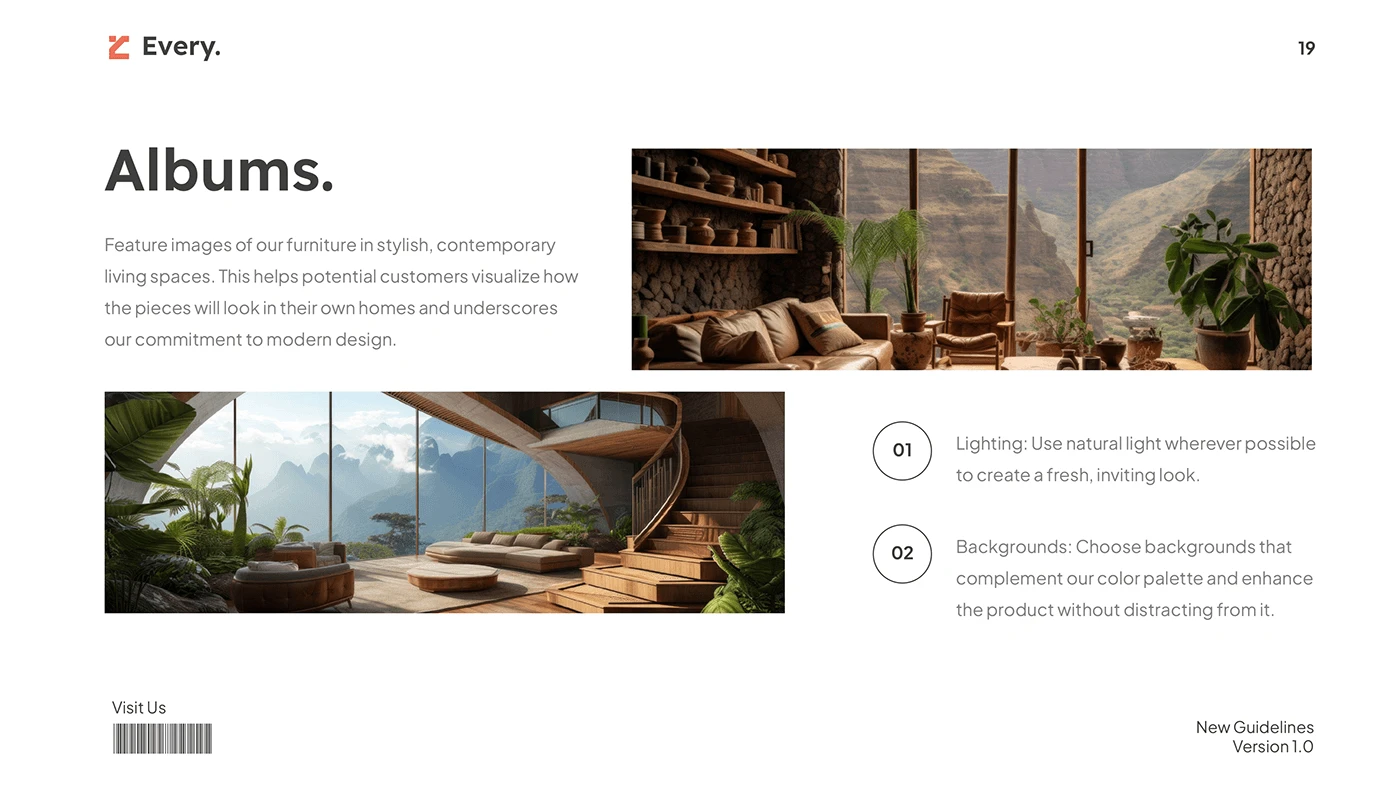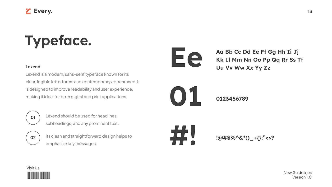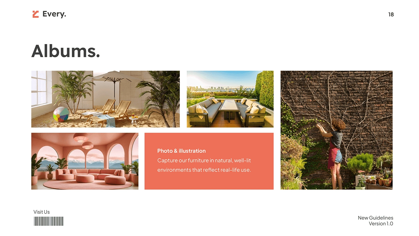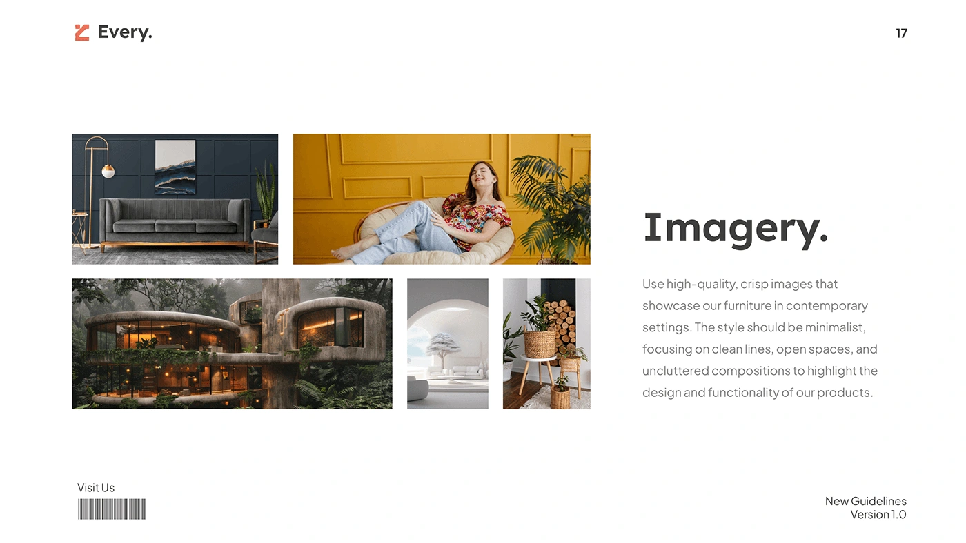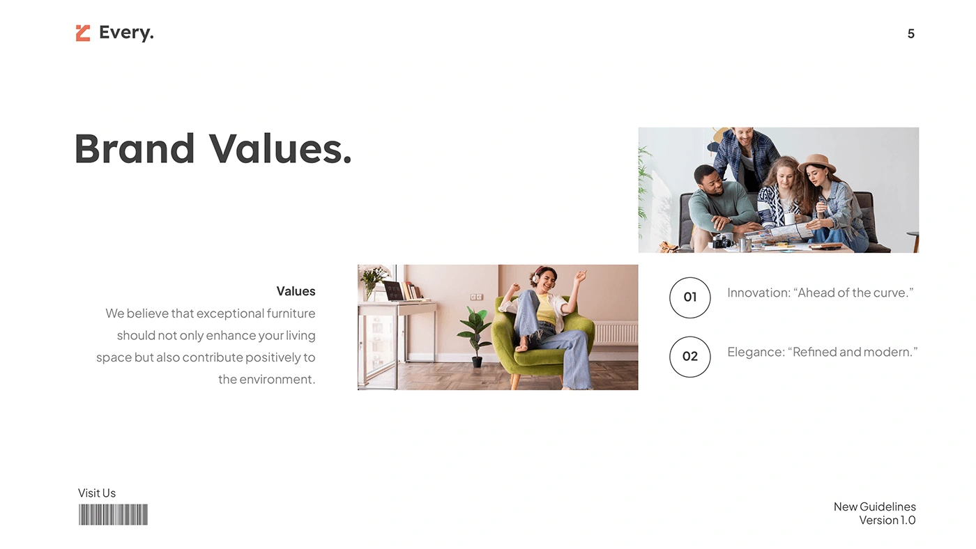 The Every logo and brand guidelines are designed to embody the brand’s core values of "Nature’s Luxury, Crafted with Care." The logo features a modern, stylized "E" that symbolizes both elegance and a commitment to sustainability. The brand guidelines ensure a consistent presentation across all platforms, detailing the correct use of the logo, color palette, and typography. By following these guidelines, Every maintains a cohesive visual identity that reflects its dedication to premium craftsmanship and environmental responsibility.