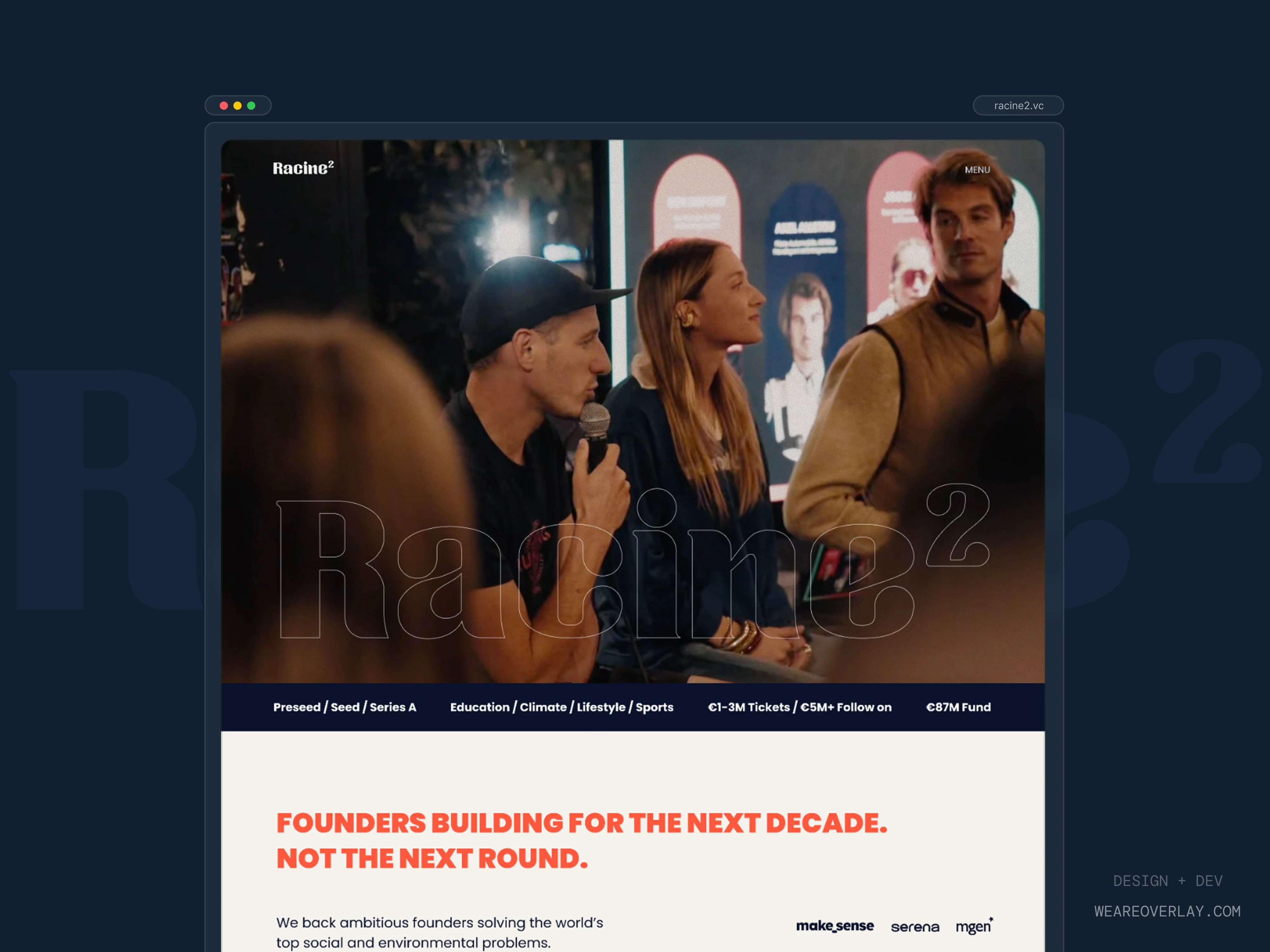 Racine² is an €87M impact initiative by Serena and makesense supporting early-stage founders in climate, health, education and sports.