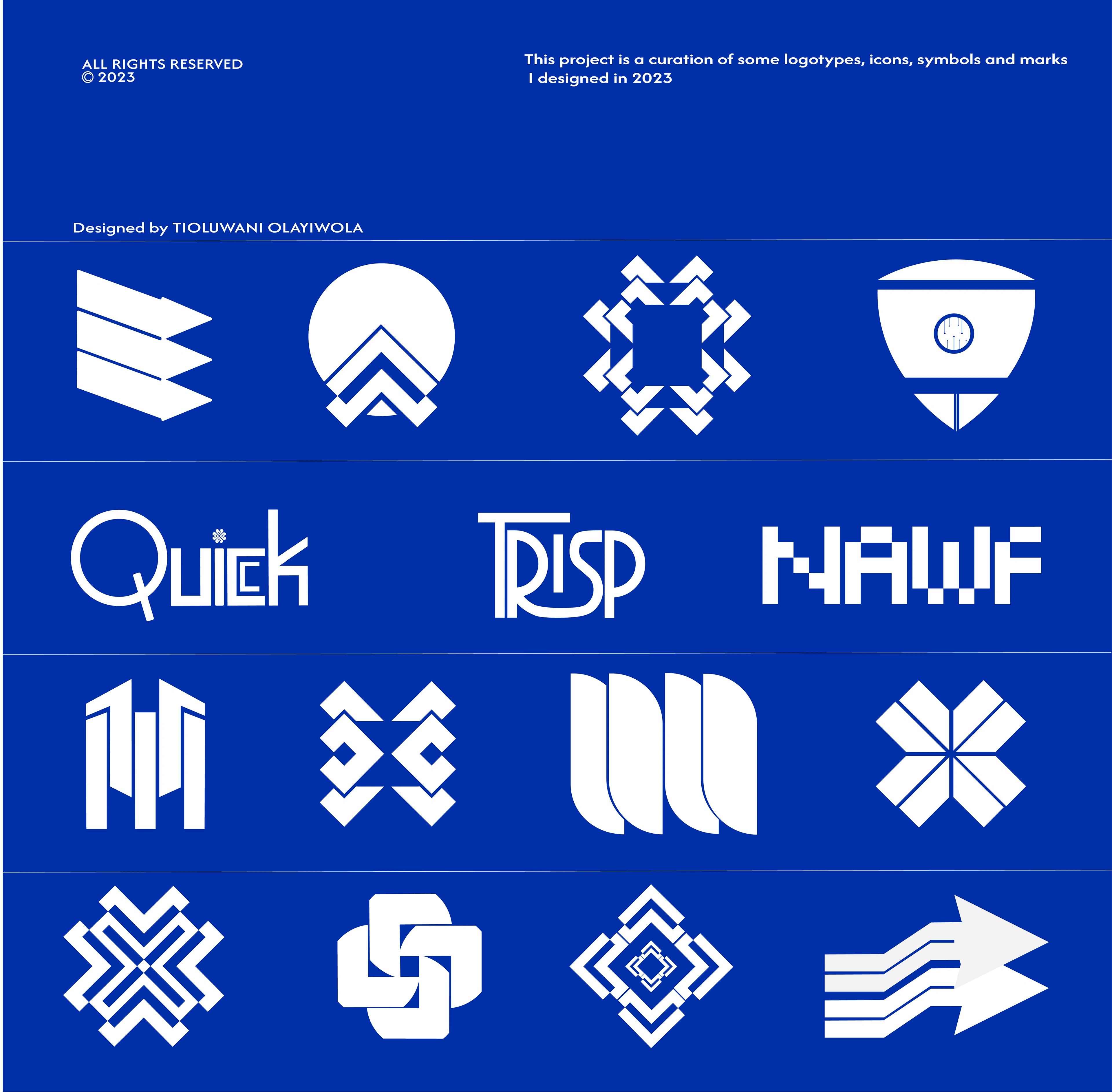 My Logos, Marks & Symbols I created for businesses, individuals, organization, and start-ups from January to December 2023.