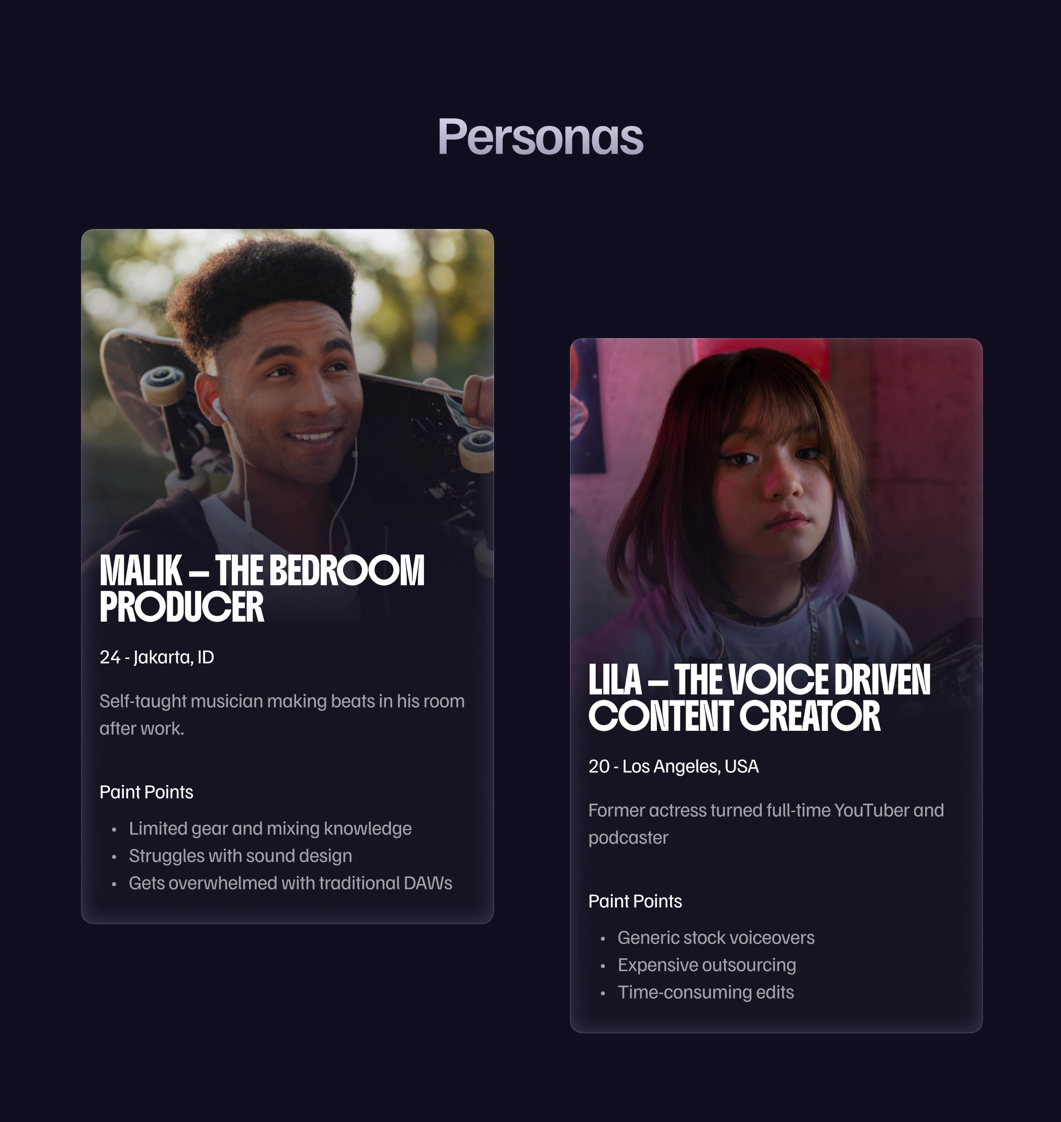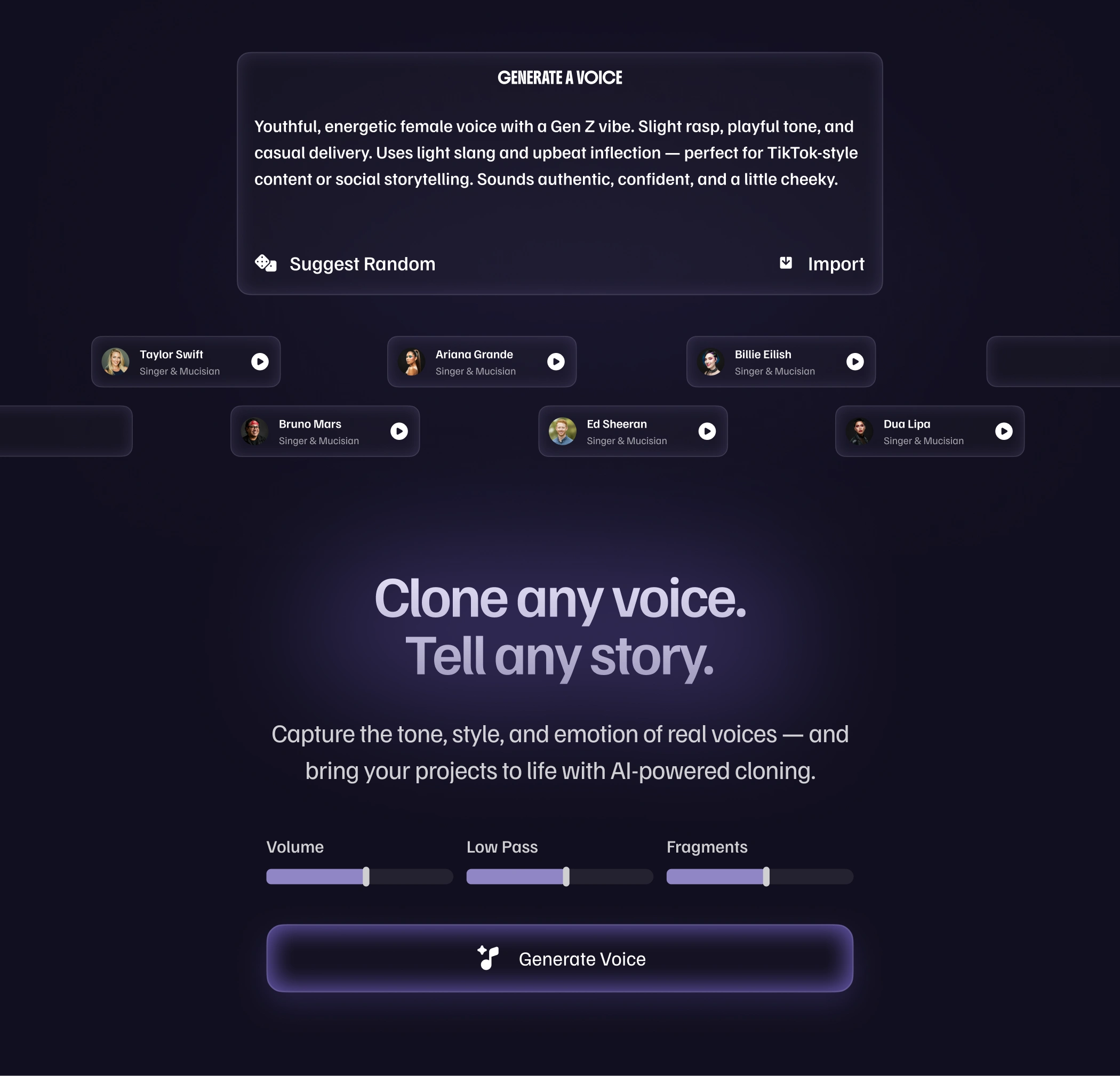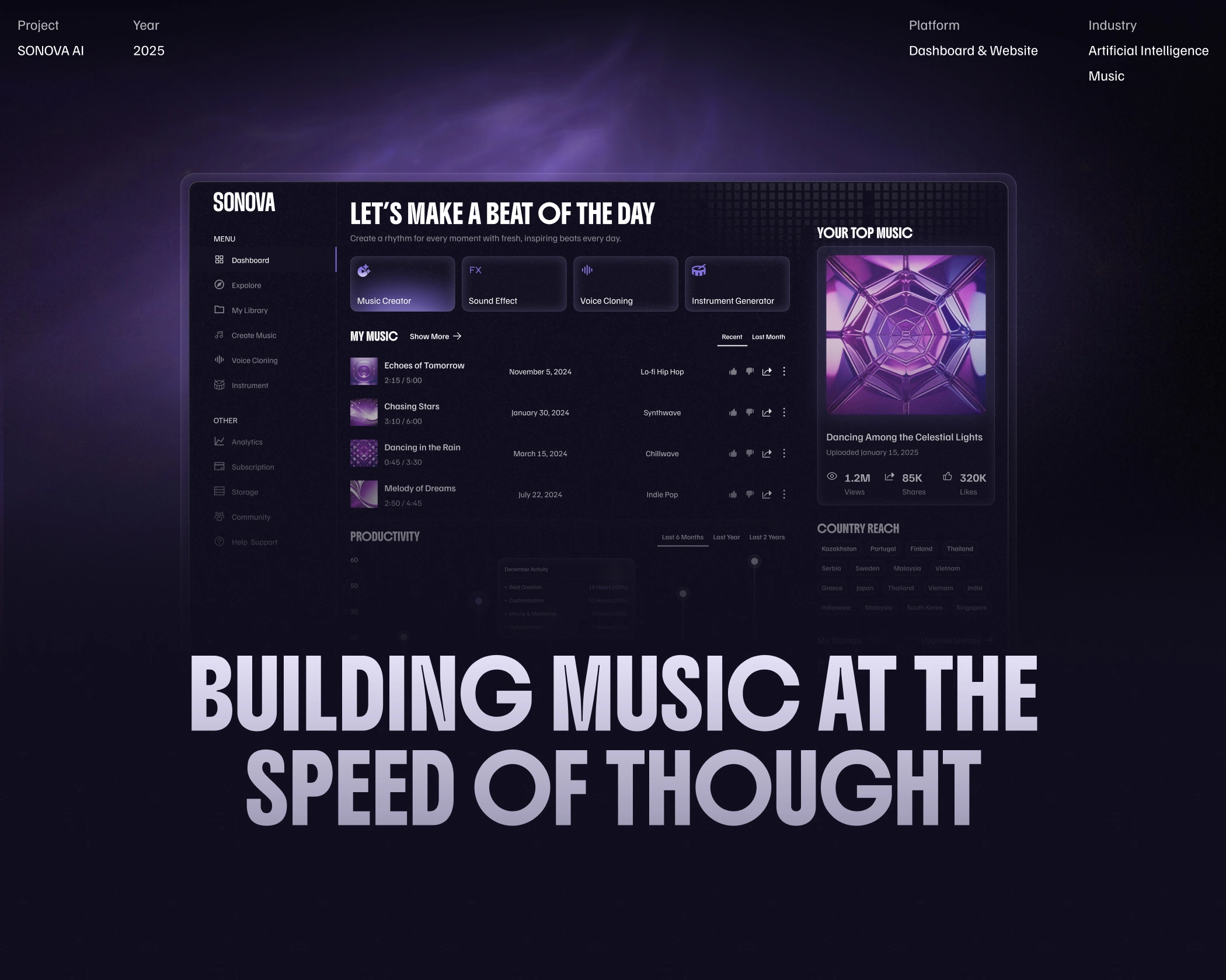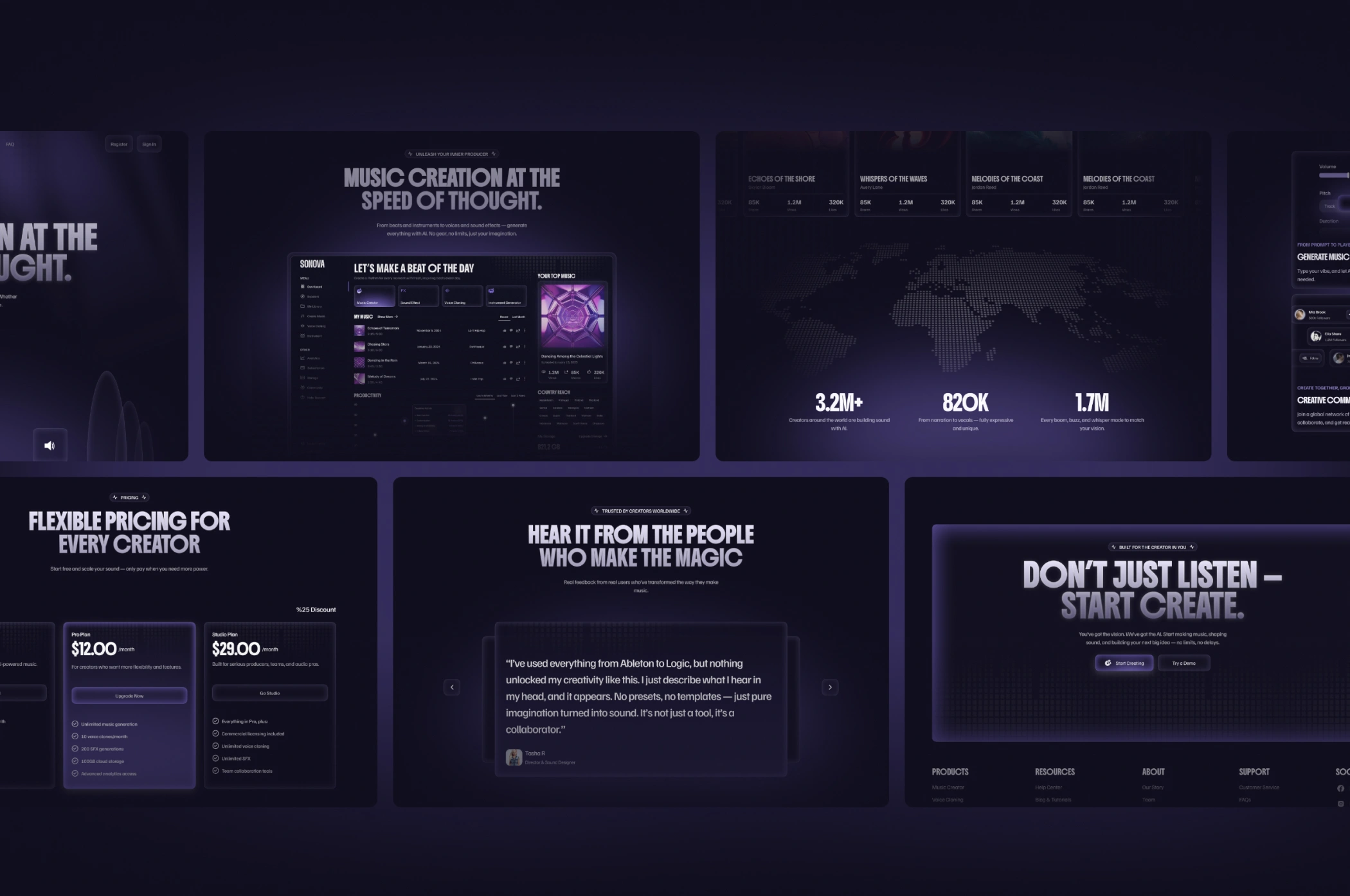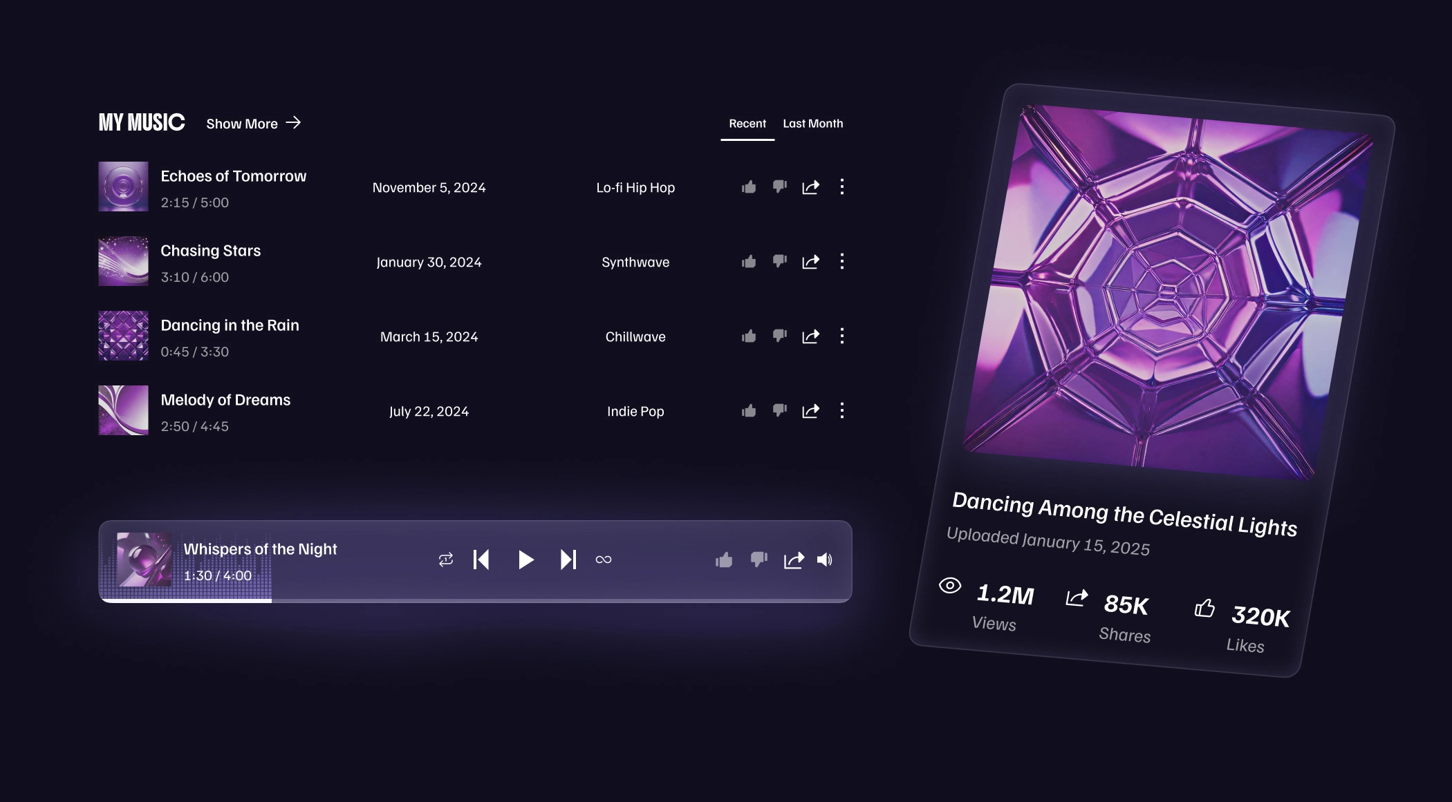A next-gen music platform where users can generate beats, clone voices, create instruments, and design sound effects — all through simple text prompts. Designed for both casual creators and professional sound designers.