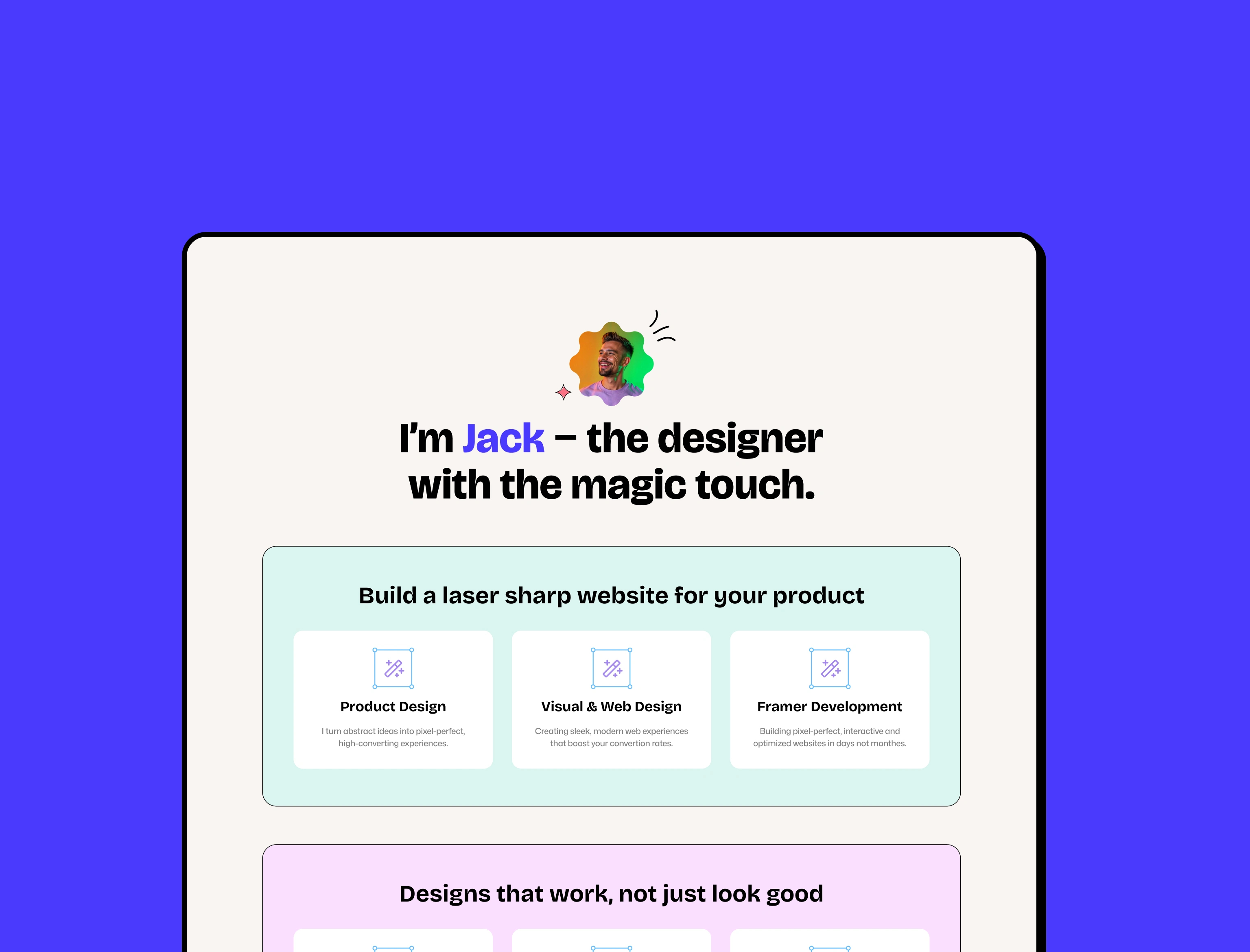 A bold, playful, and interactive template inspired by the Neobrutalism design trend — built to help product and graphic designers stand out online.