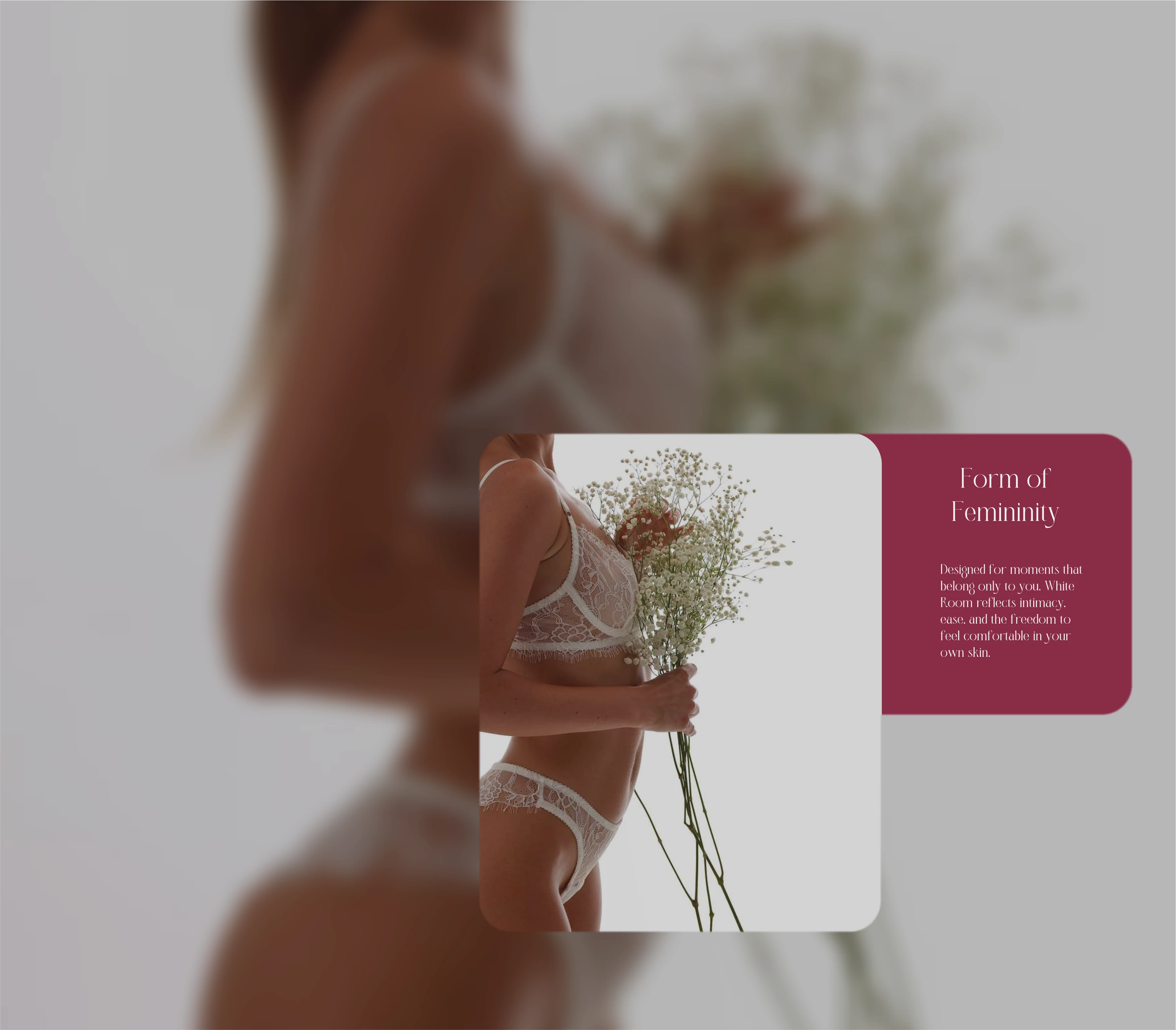 White Room Lingerie is a luxury intimates concept that aims to balance elegance and embodiment. The project isn’t just a flat visual brand. It is a visual interpretation of personal confidence, softness, and depth.