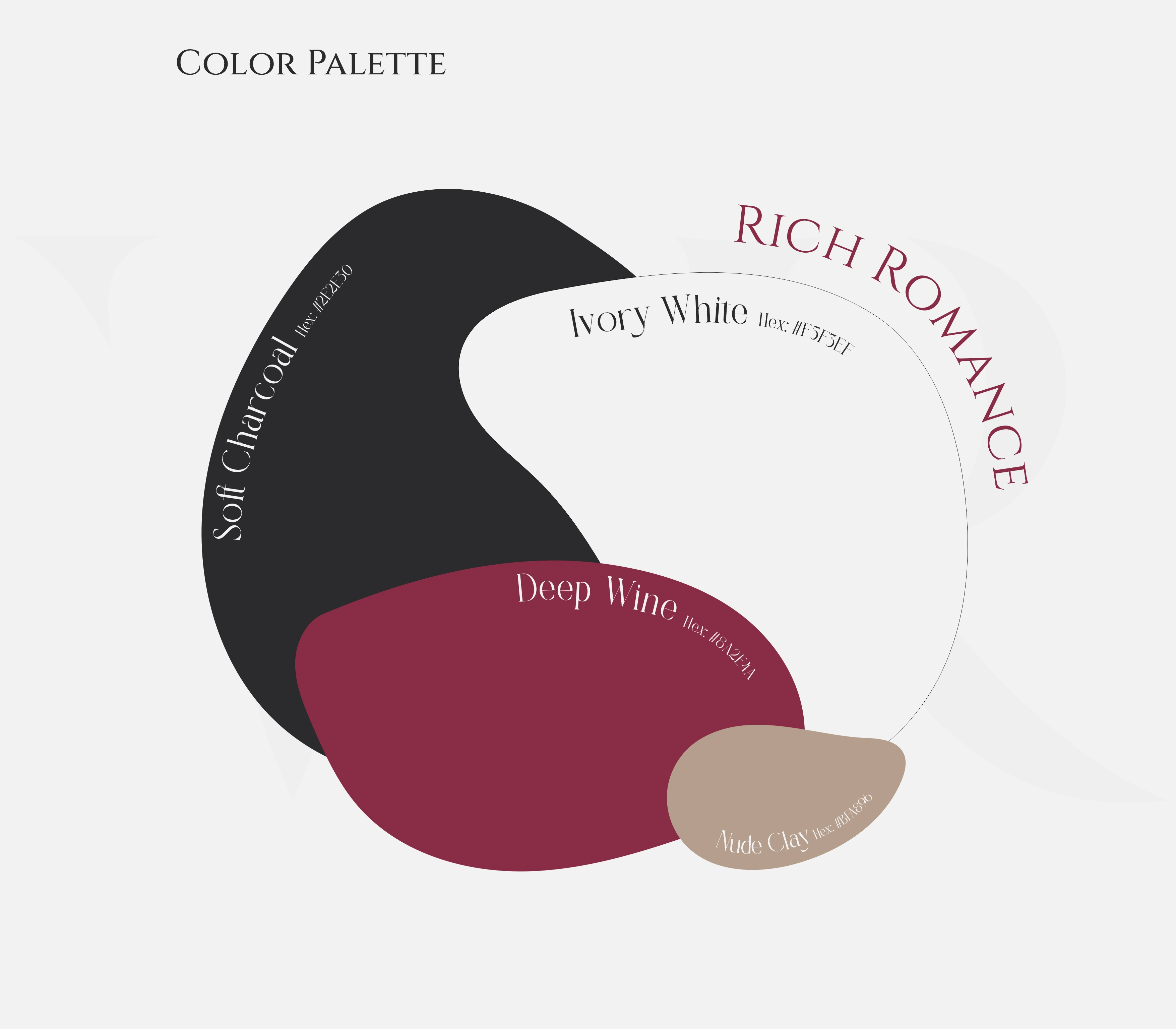 These tones convey softness, calm confidence, and visual harmony — a reflection of the brand ethos.
