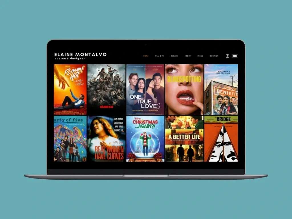 A media-rich portfolio site built on Wix, highlighting Elaine Montalvo’s costume design work for film and television.