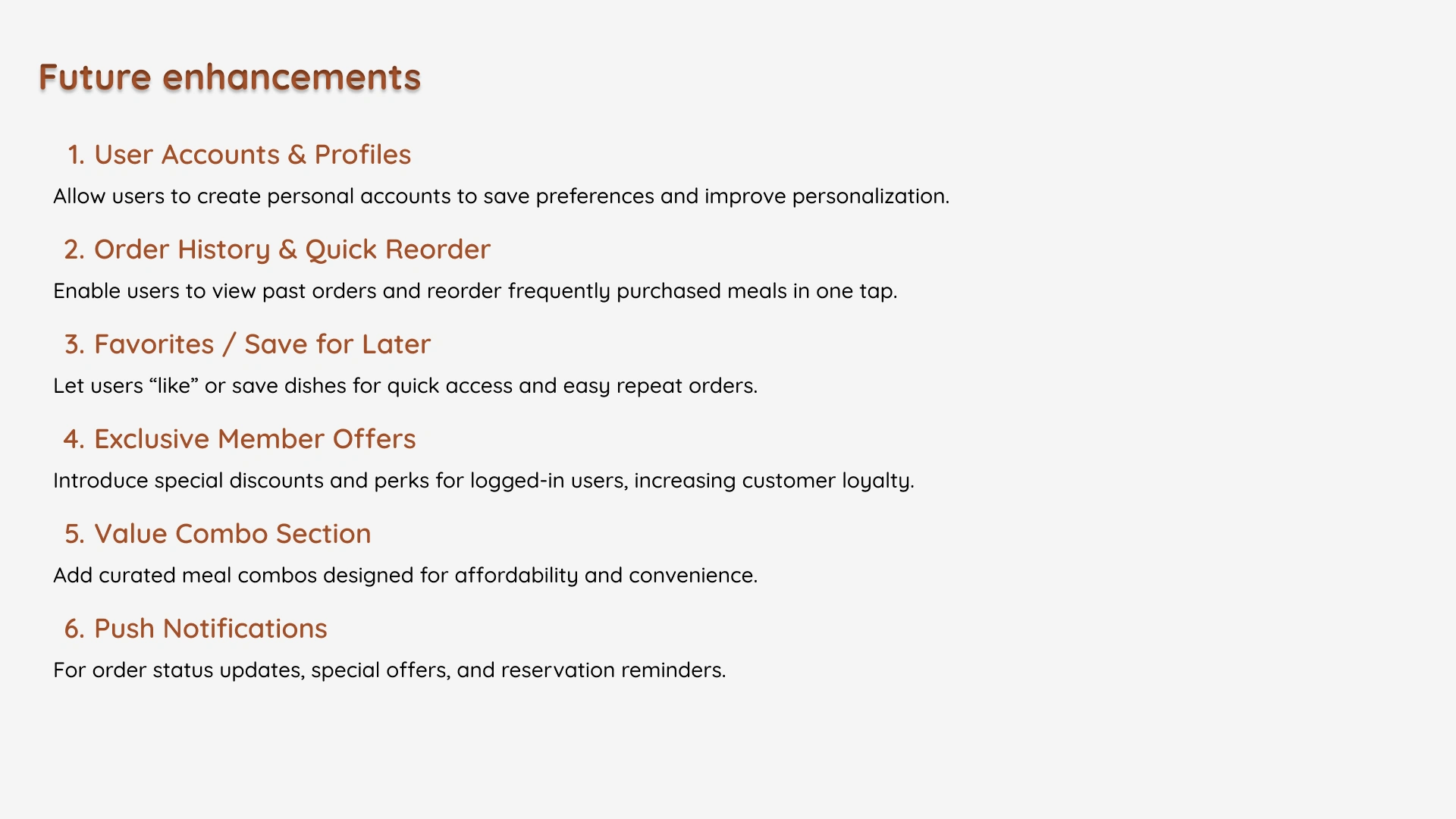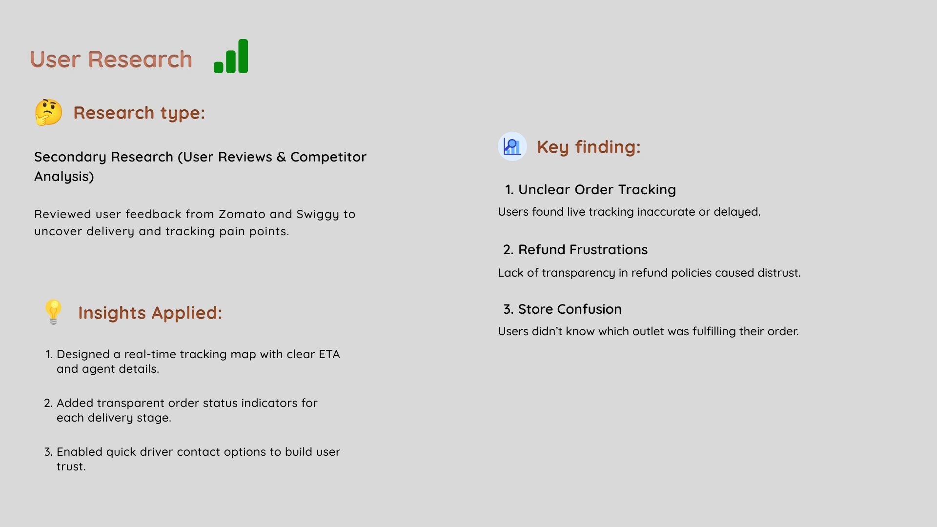 Built an end-to-end app experience that simplified food ordering, cut manual coordination for the restaurant, and created a fast, intuitive user journey.