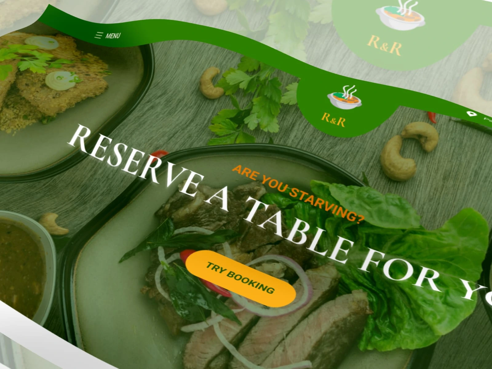 Restaurant web site hero(top) section.
