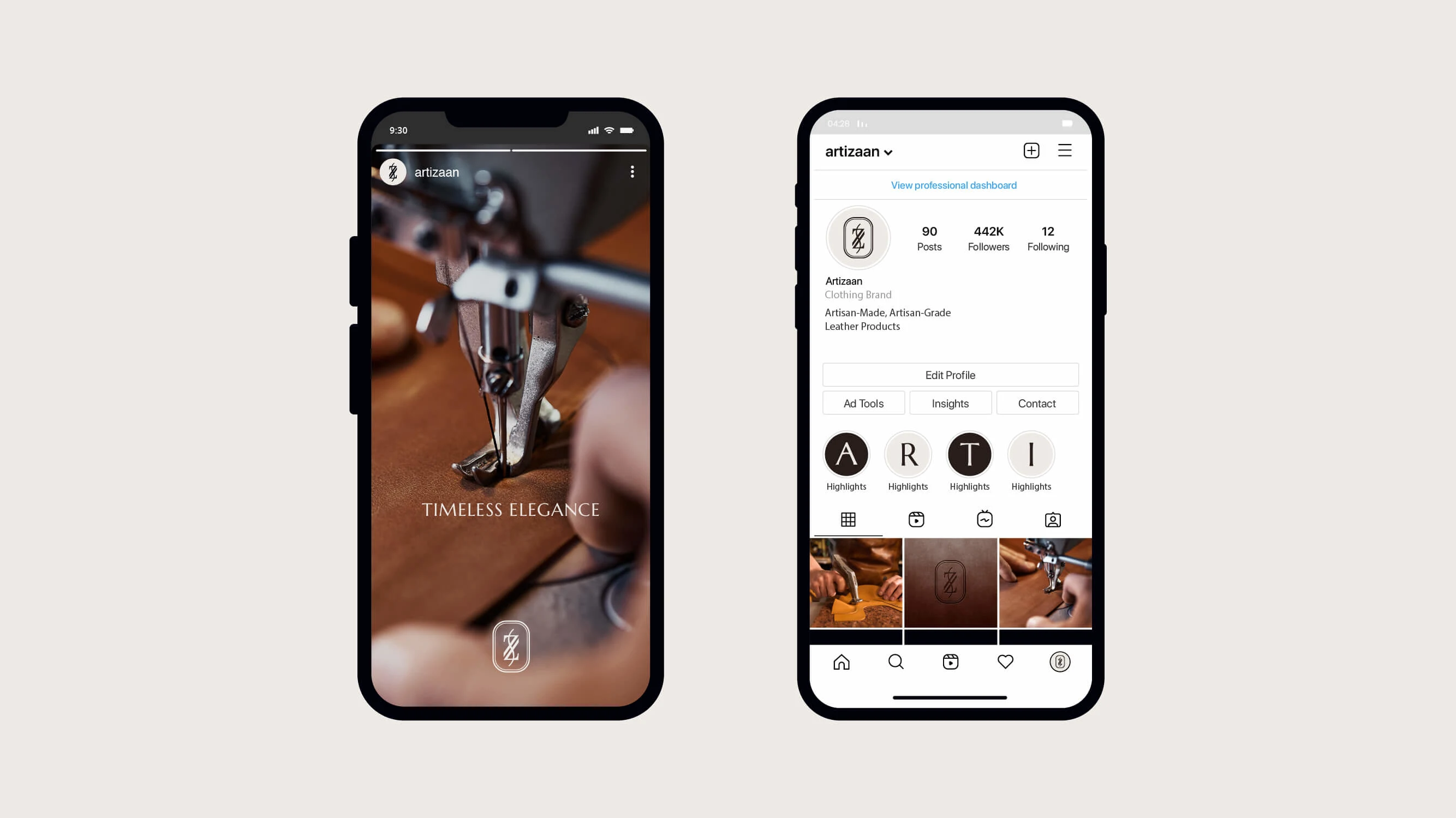 Designed Artizaan’s premium brand identity with a stitched monogram symbol, reflecting artisan leatherwork, heritage, and modern elegance.