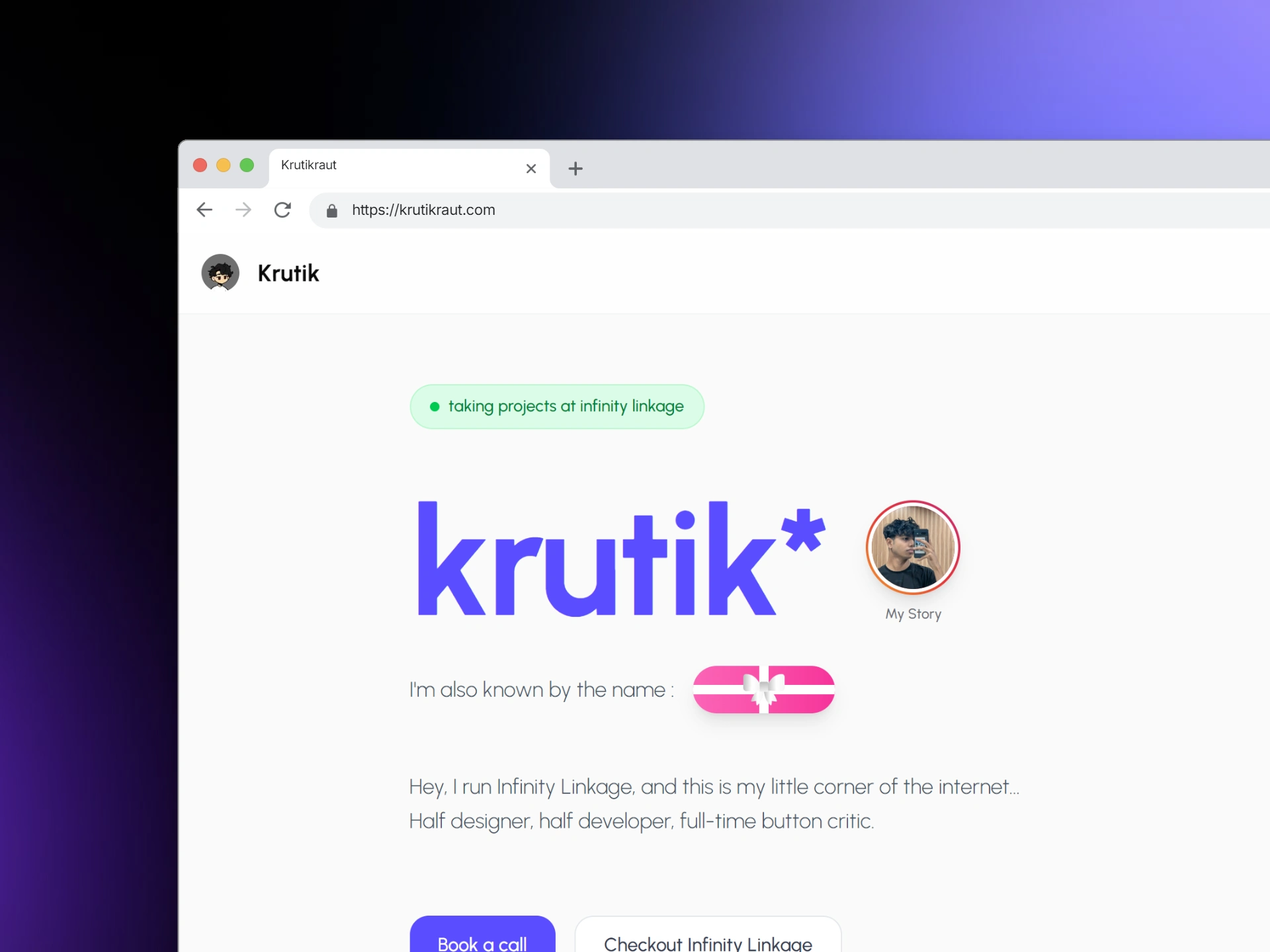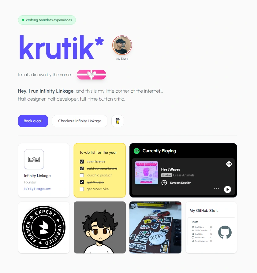 krutikraut.com is my personal brand site — designed and developed entirely by me. The goal was to build something that actually feels like me, not a generic portfolio template.