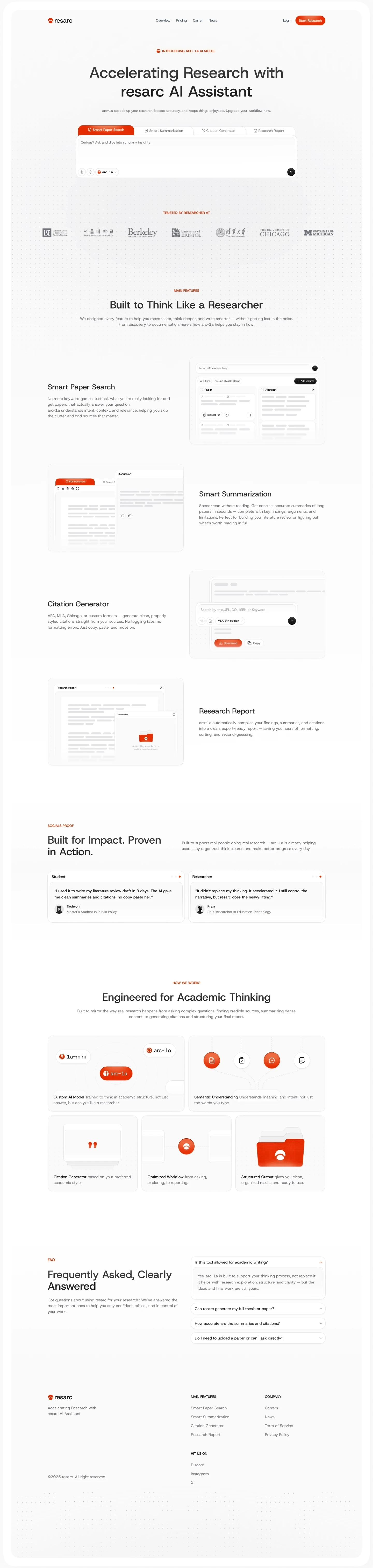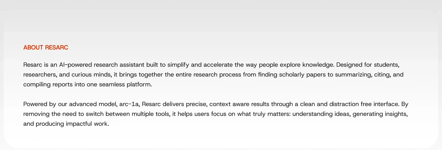 Resarc is an AI powered research assistant that simplifies and accelerates how people explore knowledge, from finding papers to summarizing and citing.