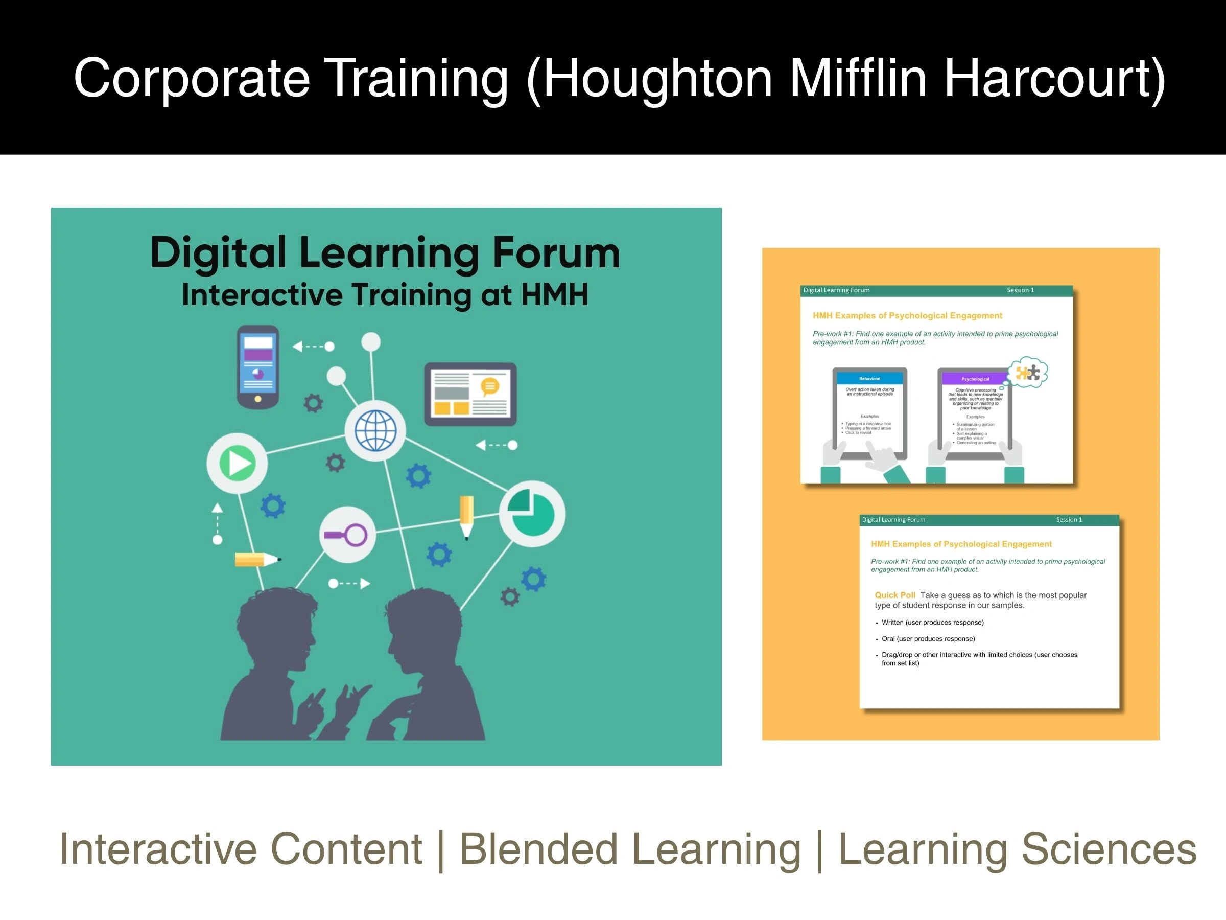 Designed interactive training on learning science principles for digital products including pre-work, course modules, live sessions, and product examples.