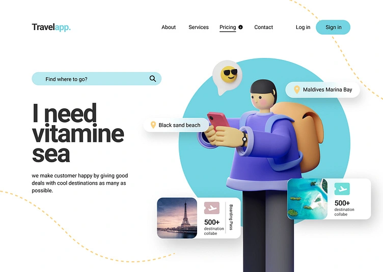 Hey People, Made this Travelapp landing page concept. Tell me what you think about this design?