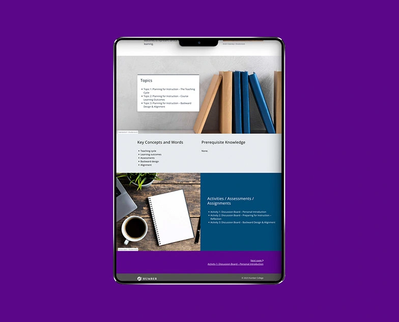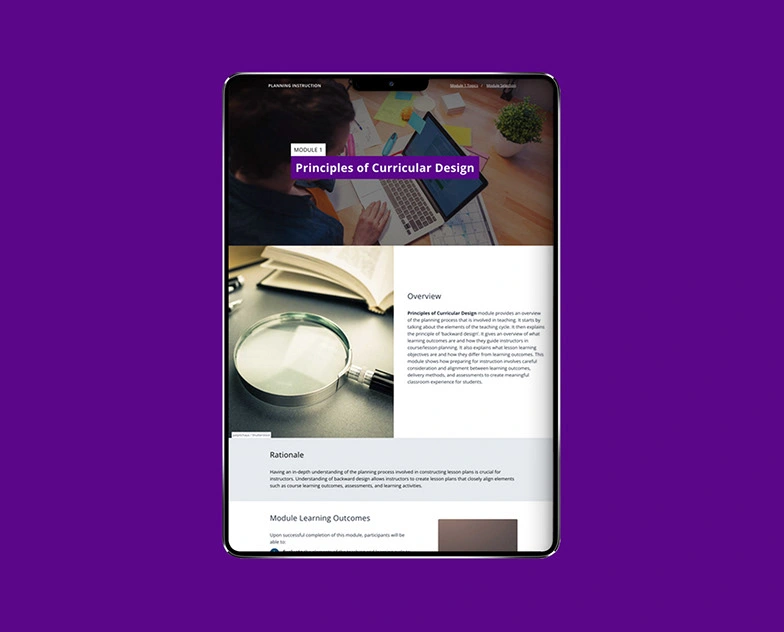 Here are several illustrative instances of our latest developments in online course construction. The process of crafting an online course is a collaborative endeavour that encompasses a team of dedicated professionals, within which my role as the graphic designer is paramount. My responsibilities center around meticulously curating the visual framework, harmonizing it with the course's content, and sourcing supplementary imagery. This encompasses the formulation of informative infographics and visually engaging graphics, all of which coalesce to elevate the overall pedagogical encounter for the students, rendering it both enlightening and aesthetically gratifying.