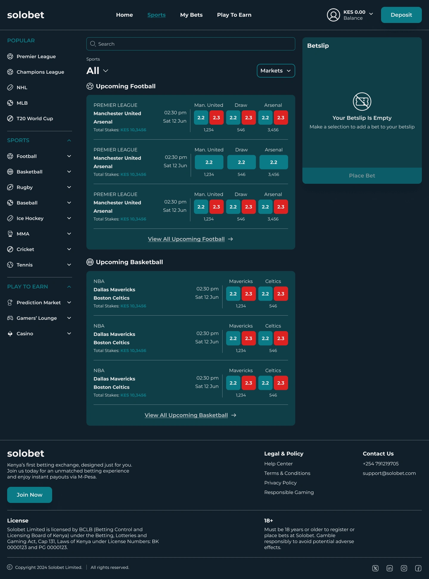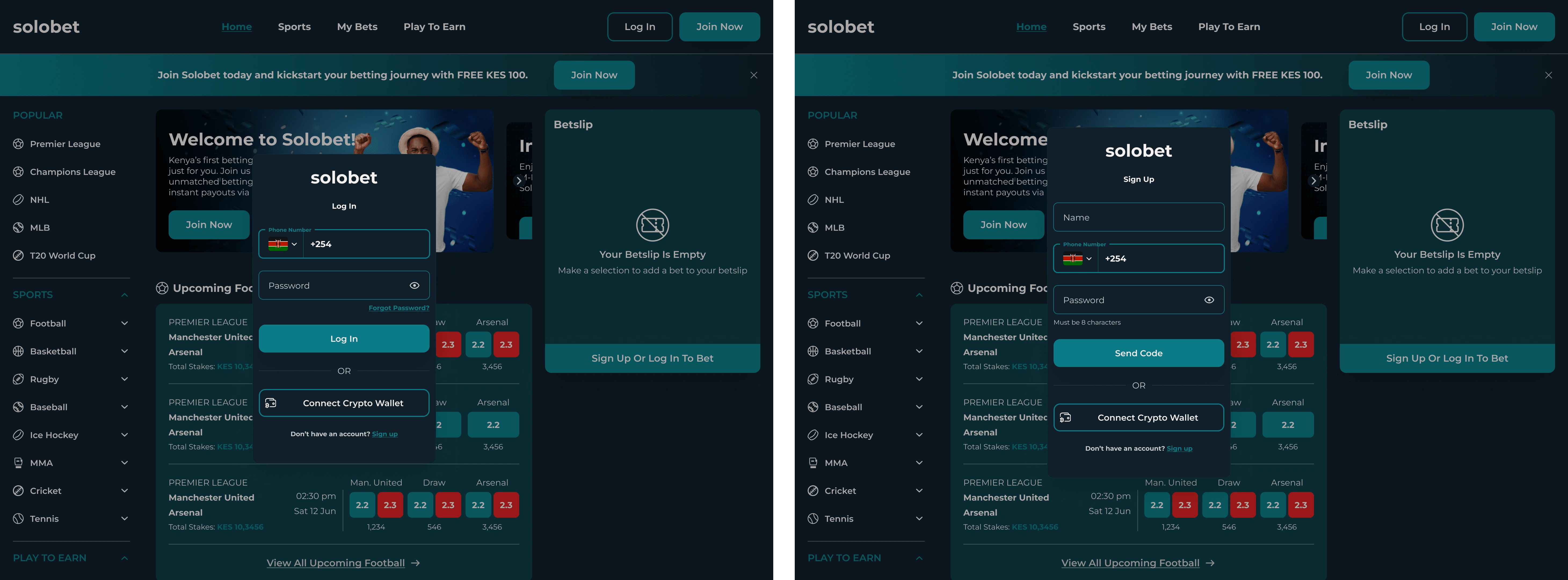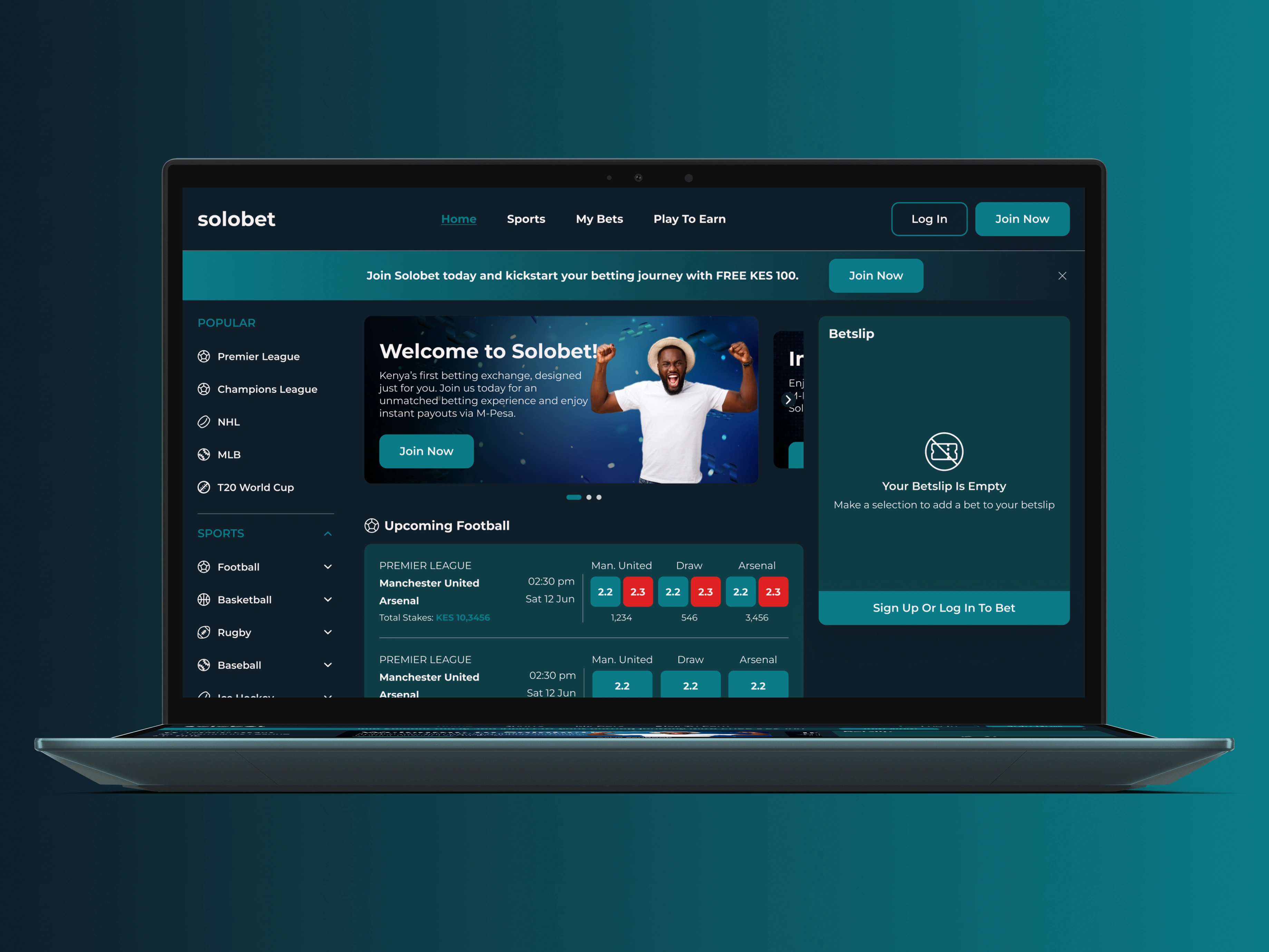 SoloBet is a decentralized peer-to-peer betting platform designed to deliver a seamless, intuitive, and transparent betting experience for users in Kenya and across Africa. Traditional betting platforms often suffer from poor user experiences, high fees, and opaque odds controlled by bookmakers. The project's goal was to design a user-first platform that enhances trust, reduces friction, and ensures fairness through blockchain technology.