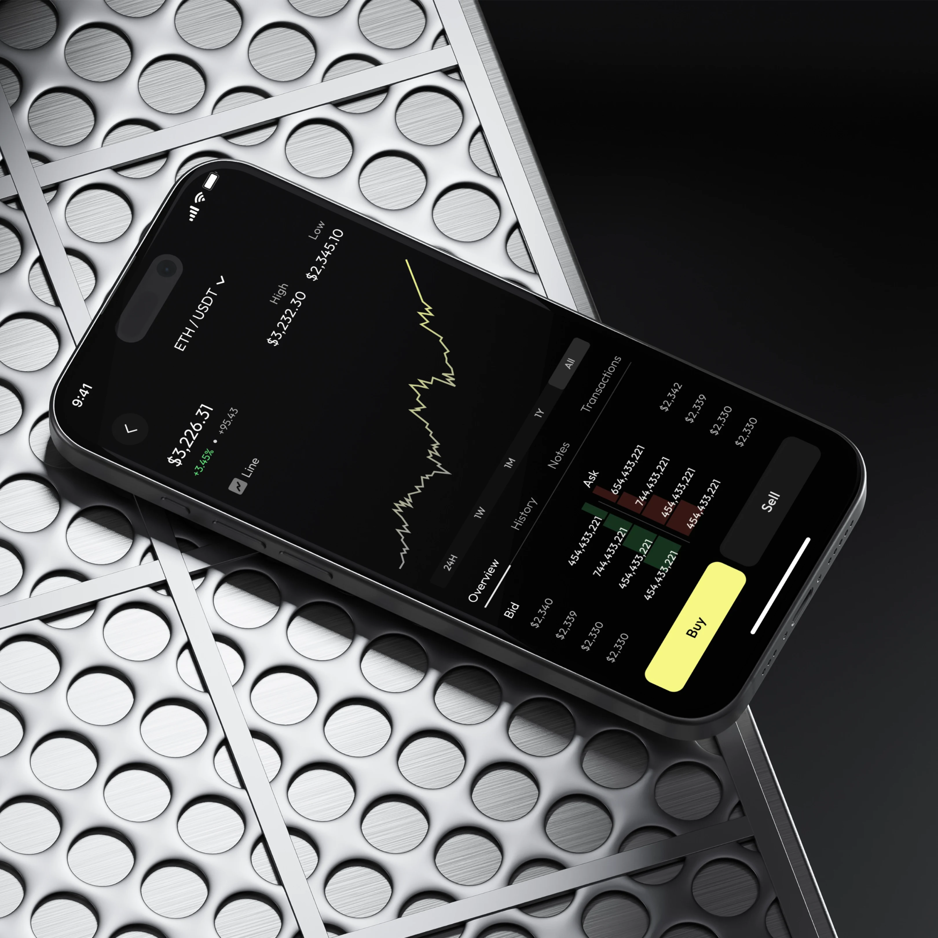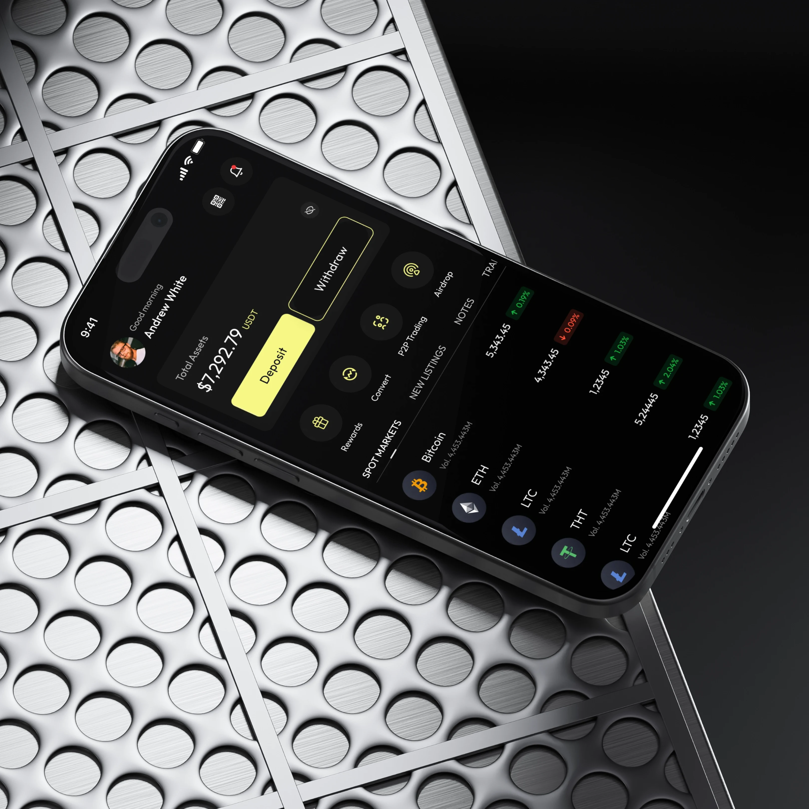I chose a dark theme to reduce visual strain and reflect the finance/crypto aesthetic, then introduced a soft yellow accent to highlight actions like “Sign Up,” “Deposit,” and “Buy.”