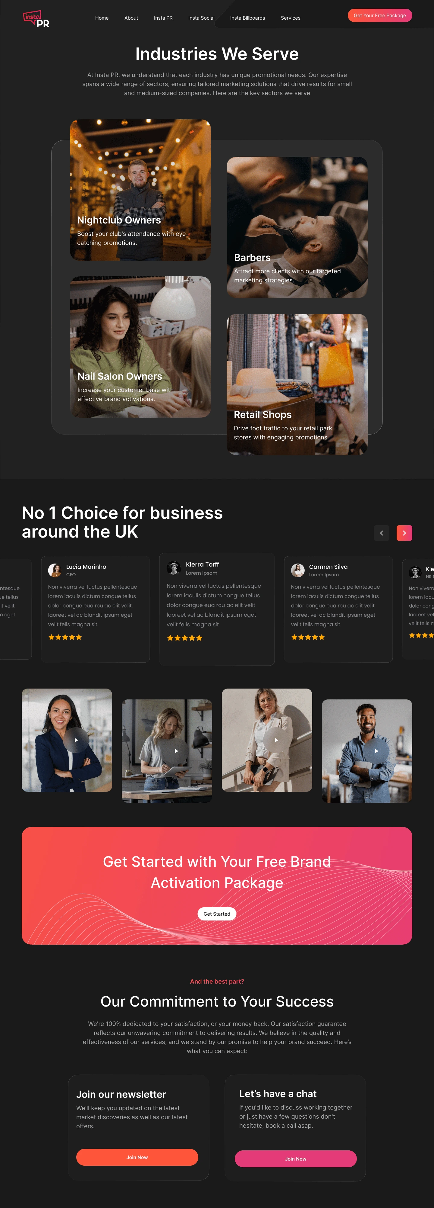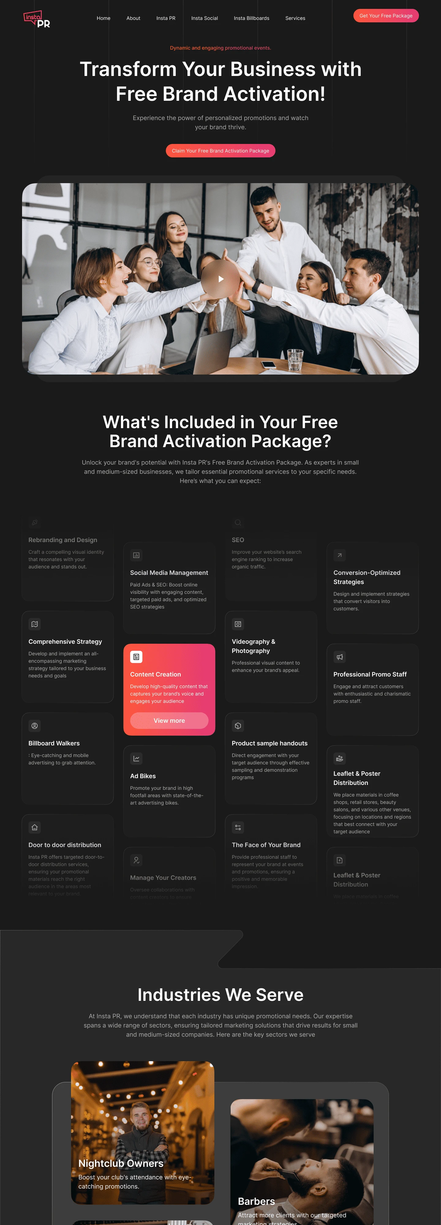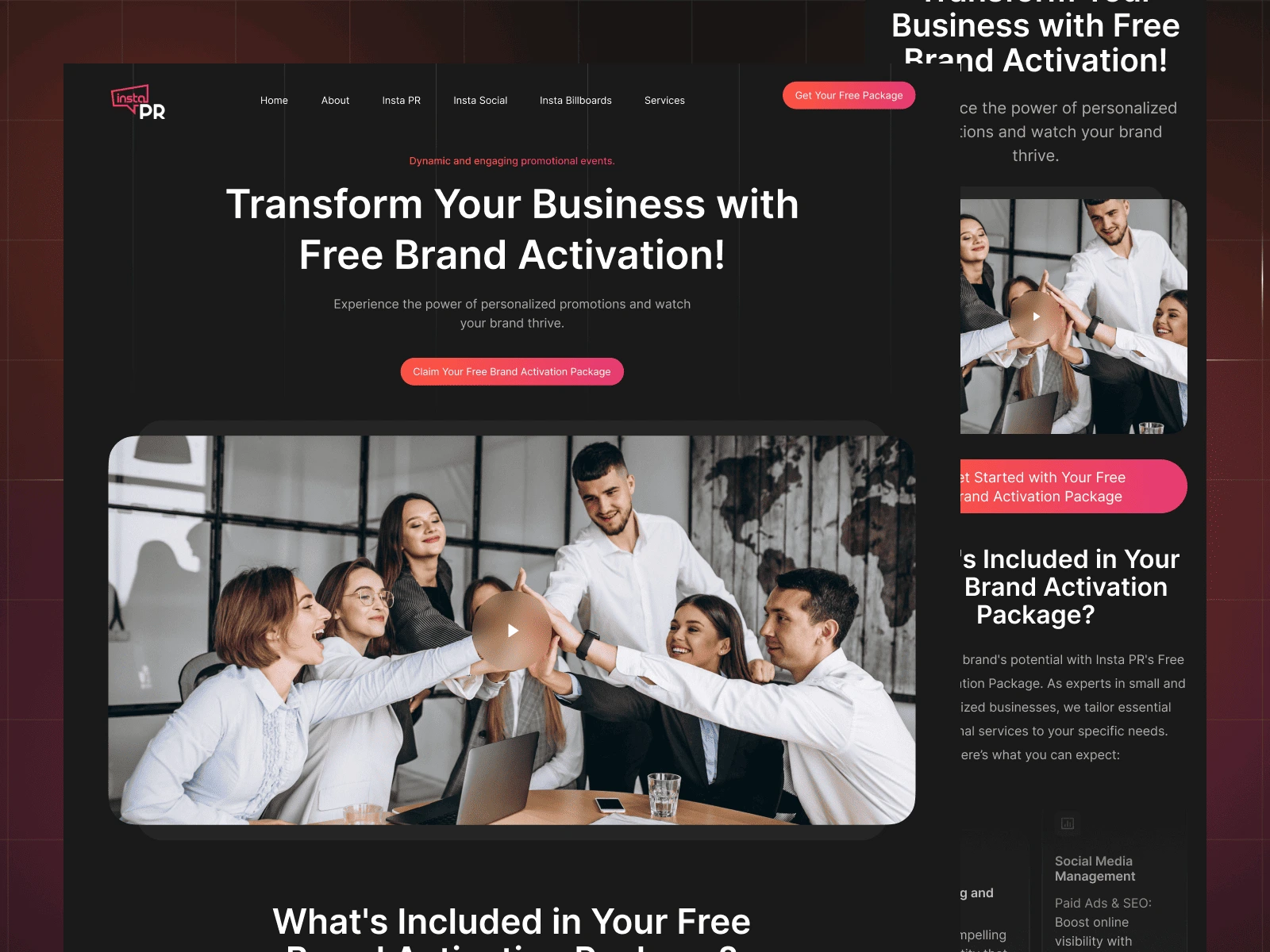 Landing page promoting free brand activation services for small businesses, focusing on lead generation and service clarity